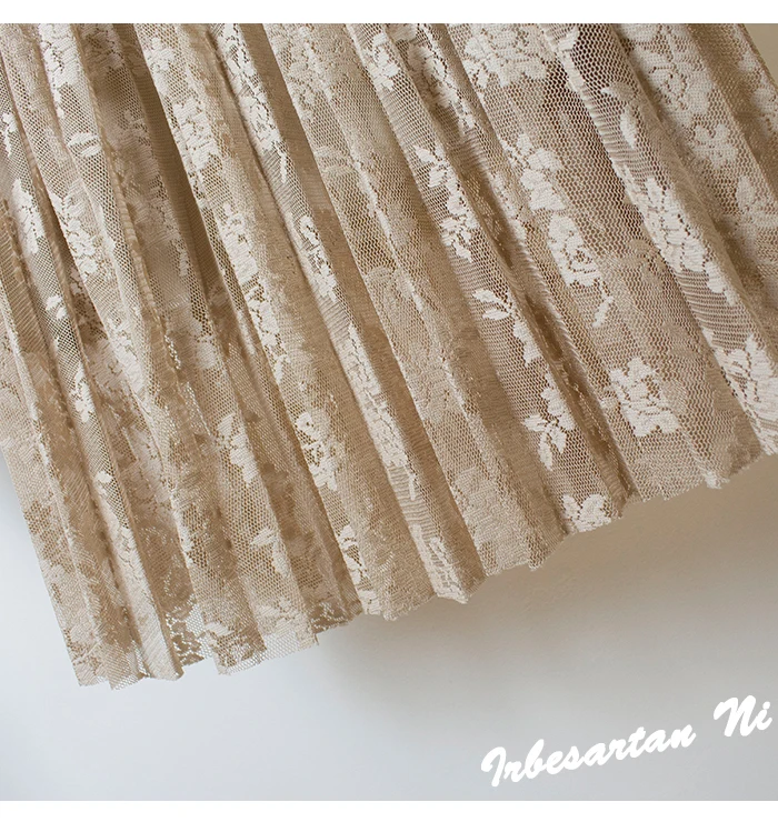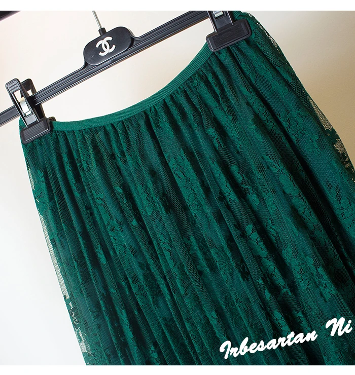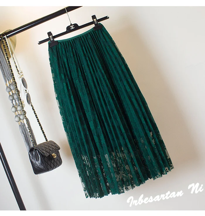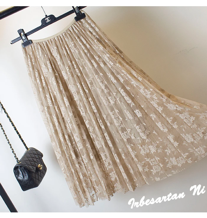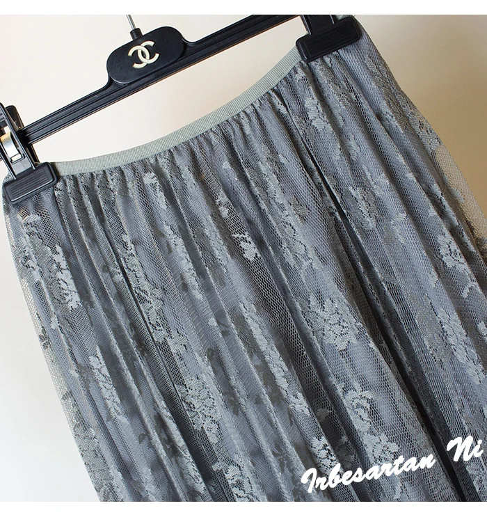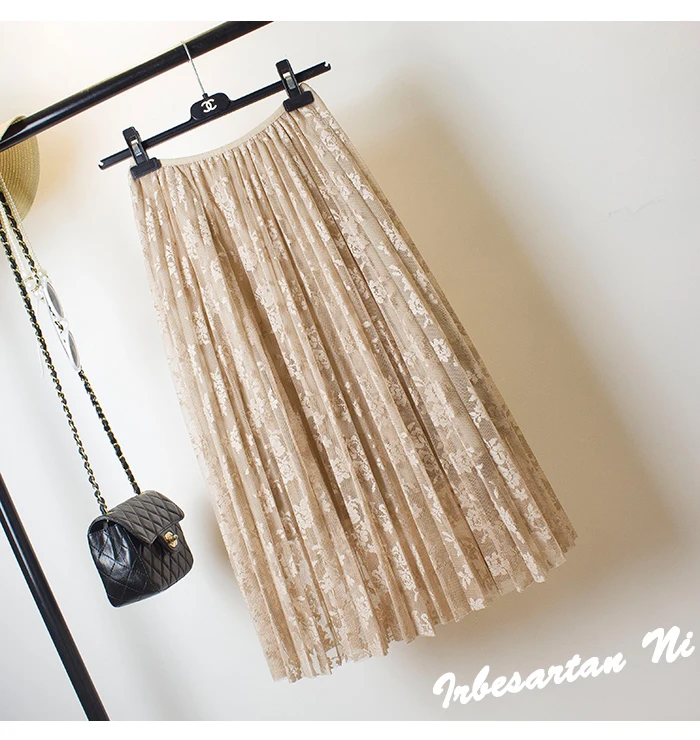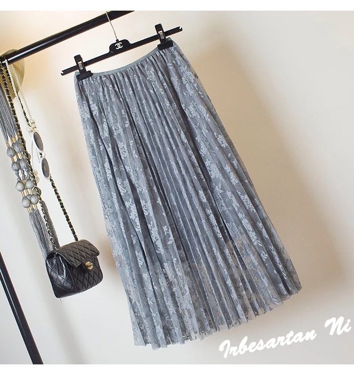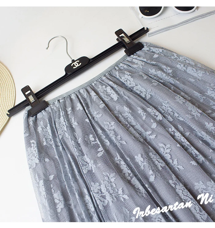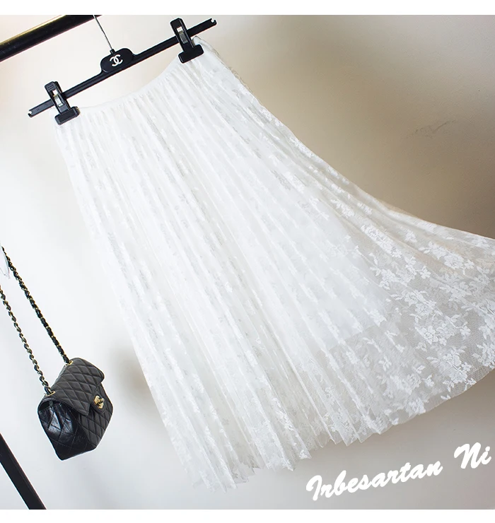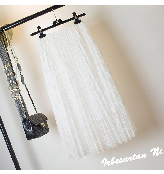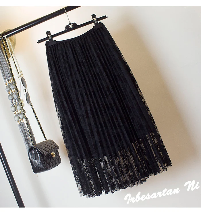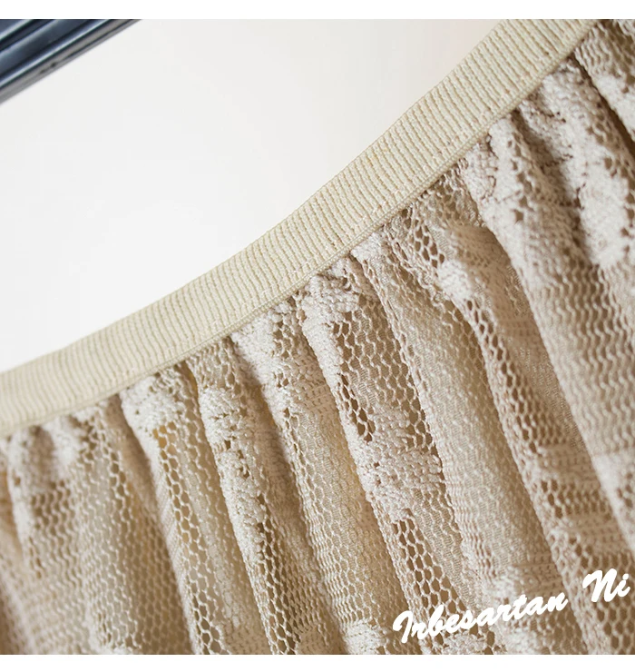 2017 spring and autumn lace hook flower skirt pleated petticoat medium long underskirt elastic waist all match basic half slip