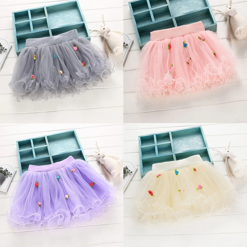 2017 Summer Hot-selling Baby Kids Girls Colorful Floral Tutu Skirt Princess Party Tulle Gown Mini Skirt Cute Girl Clothes 1-4Y