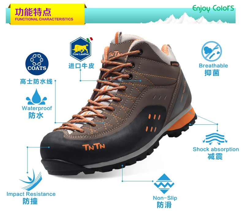 2017 TNTN Outdoor Women Hiking Shoes Winter Leather Hiking Boots Breathable Walking Boots For Women Warm Walking Trekking Shoes