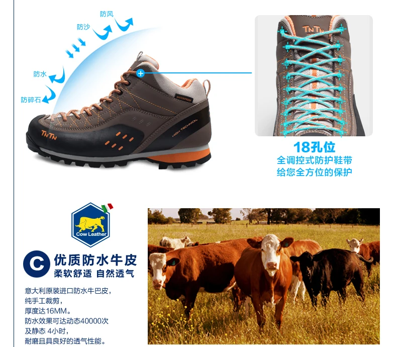 2017 TNTN Outdoor Autumn And Winter Leather Breathable Women Walking Hiking Climbing Mountain Running Shoes Women Shoes