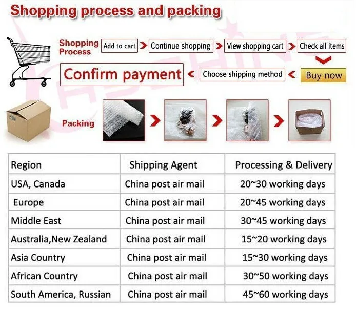 Packages from our warehouse in China will be shipped by ePacket or EMS depending on the weight and size of the product. Packages shipped from our US warehouse are shipped through USPS.