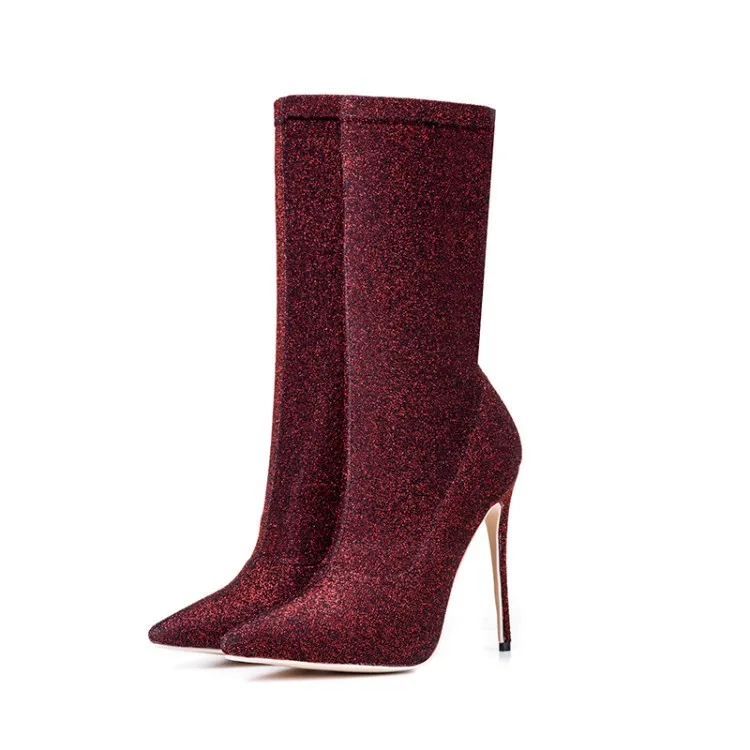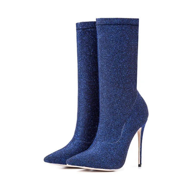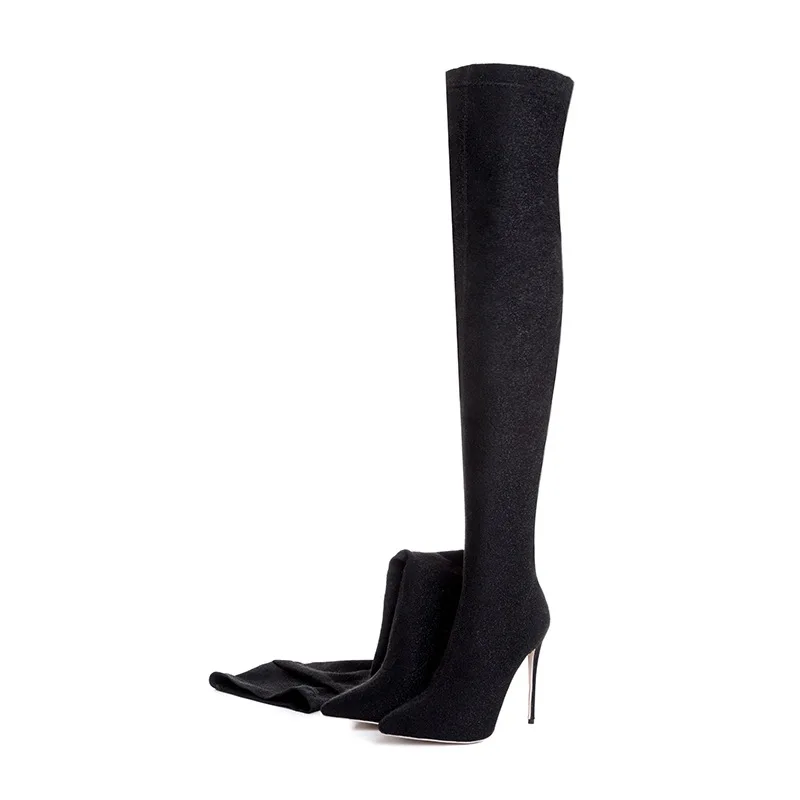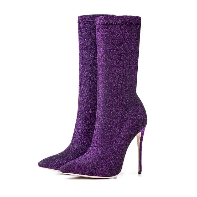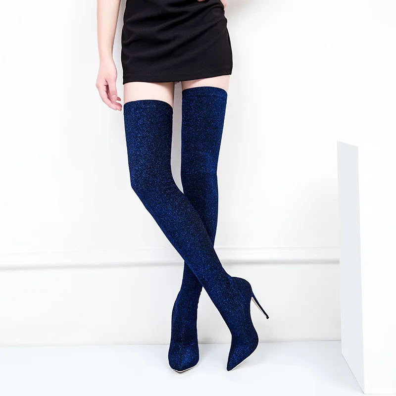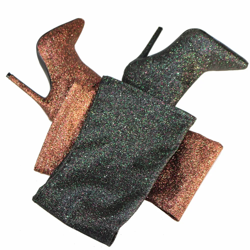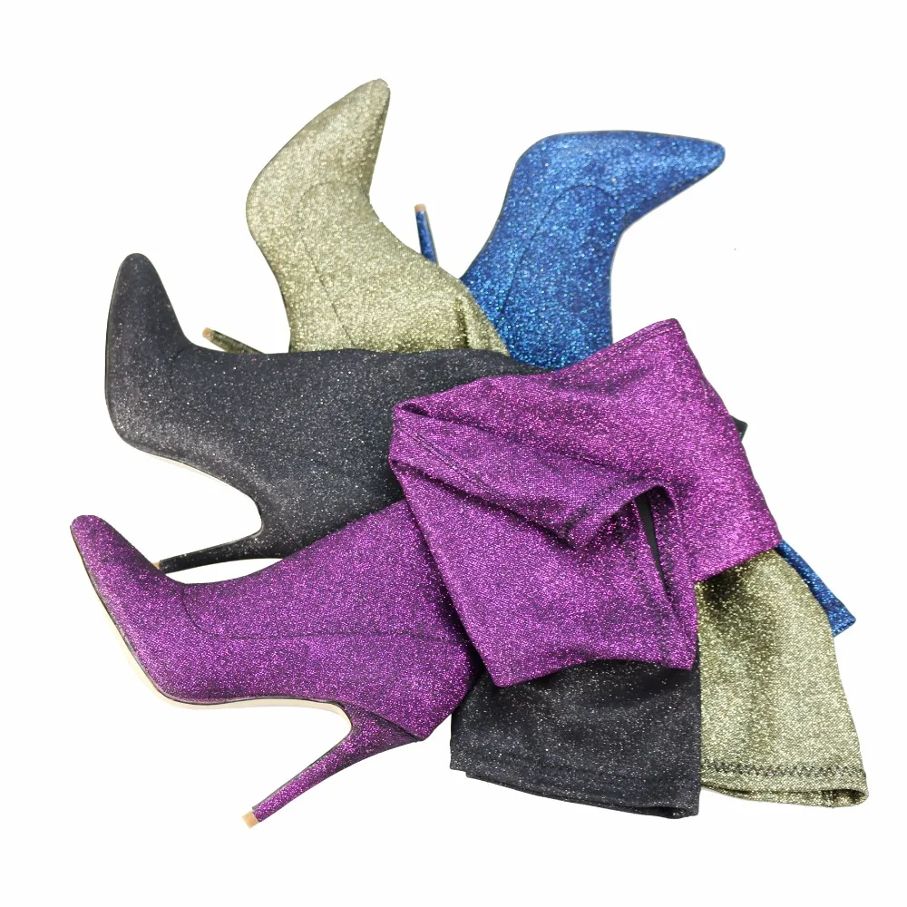 2017 winter woman purple green boots over the knee thigh high boots bling bling sexy high heels sequined cloths slip on shoes