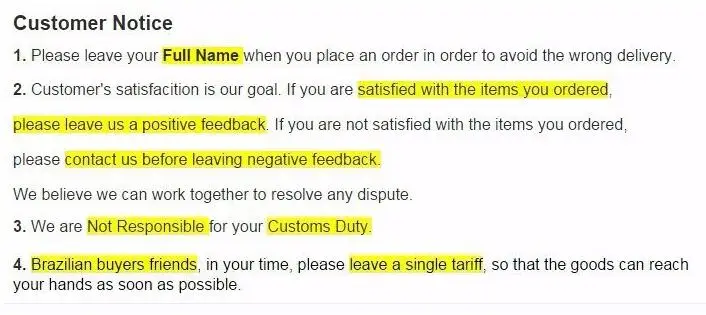 We are not responsible for any custom fees once the items have shipped. By purchasing our products, you consent that one or more packages may be shipped to you and may get custom fees when they arrive in your country.