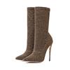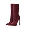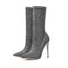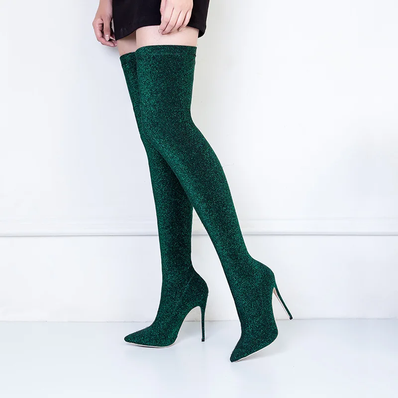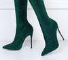 2017 winter woman purple green boots over the knee thigh high boots bling bling sexy high heels sequined cloths slip on shoes