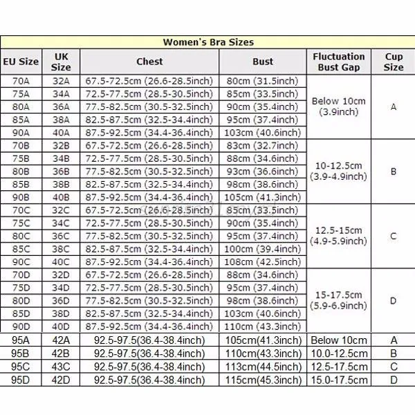 Size:70, 75,80(Band size: 32,34,36, Cup: B,)