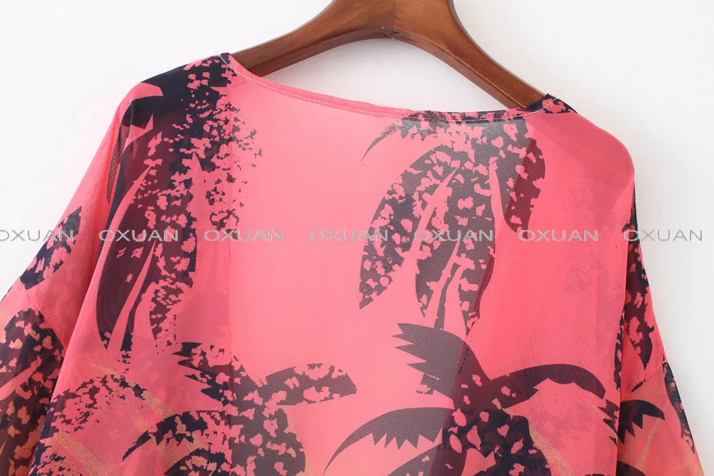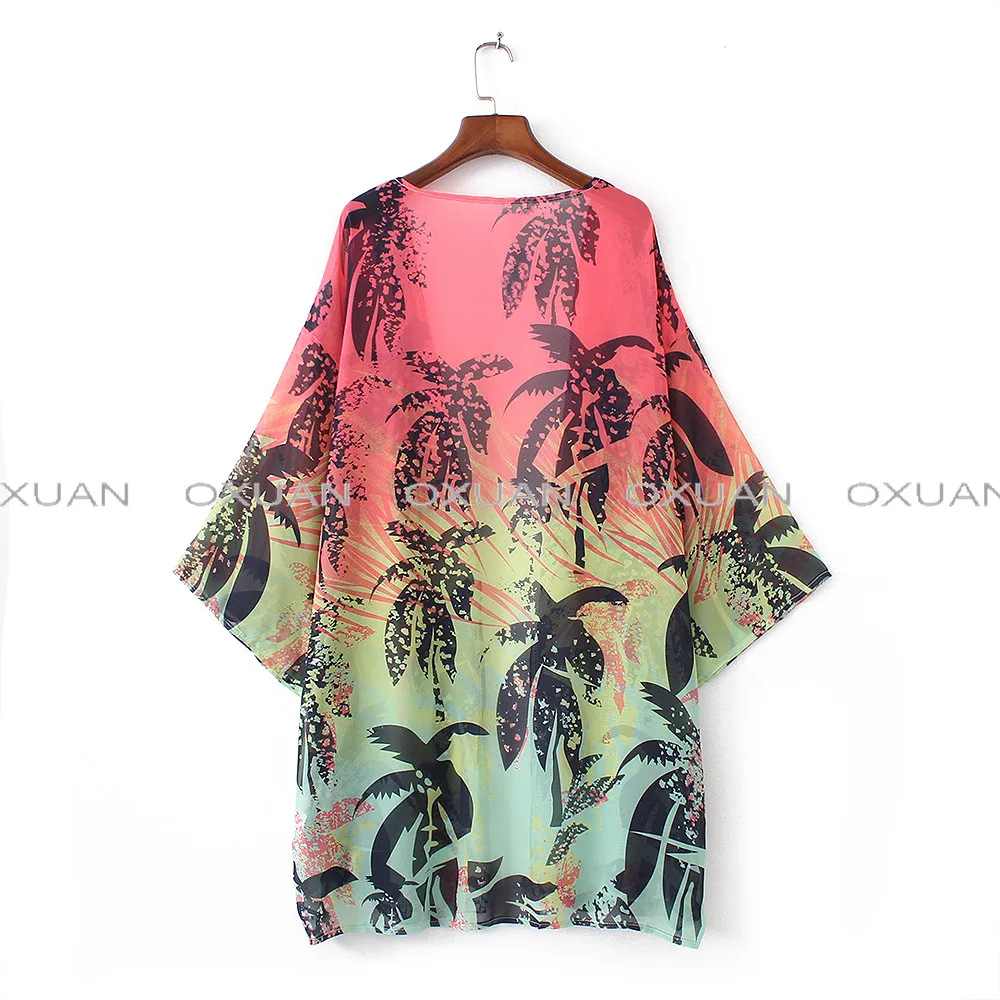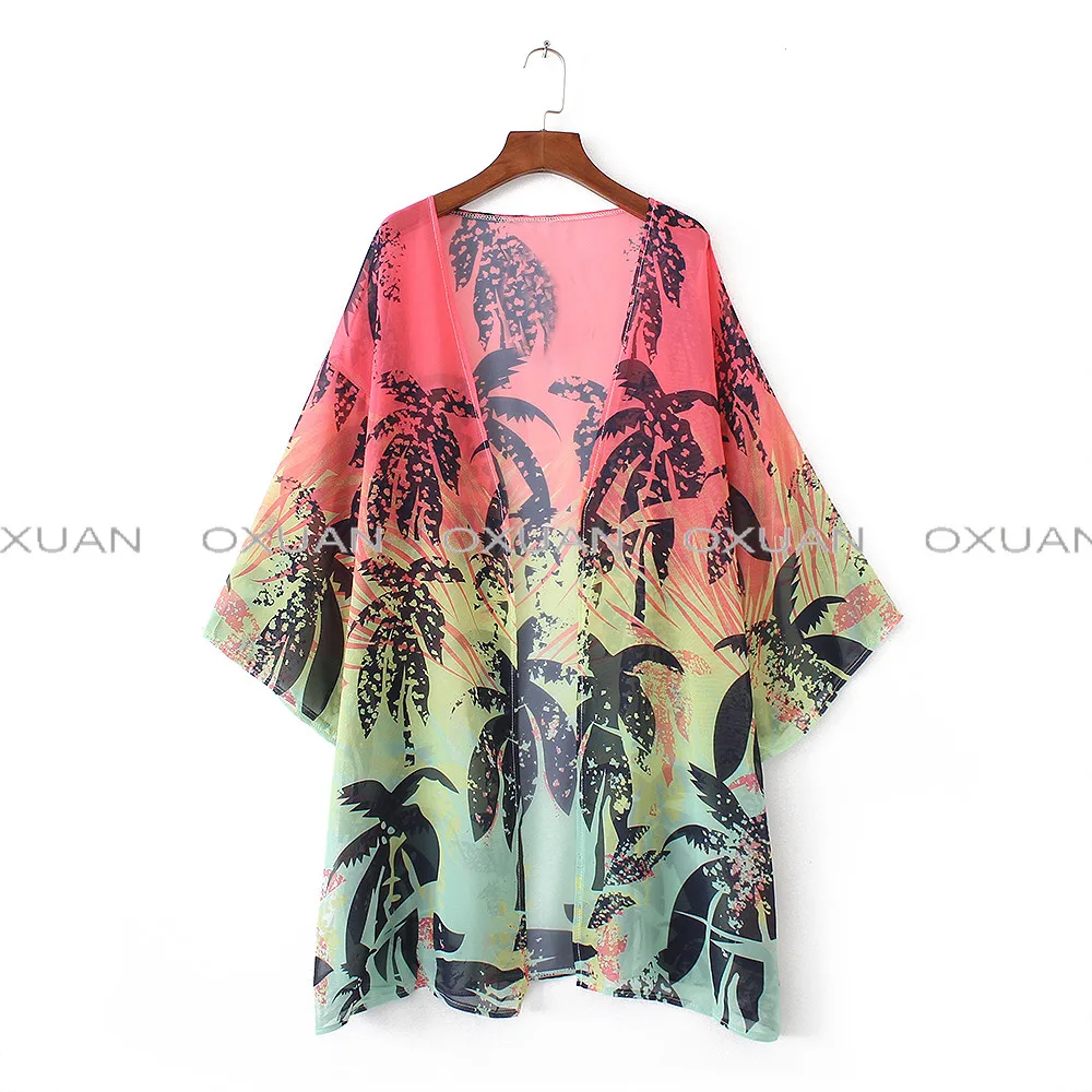 2017 Women Three Quarter Kimono Floral Printed Chiffon Knits Beach Shirts Sunscreen Clothing Blusas Vintage Cardigan