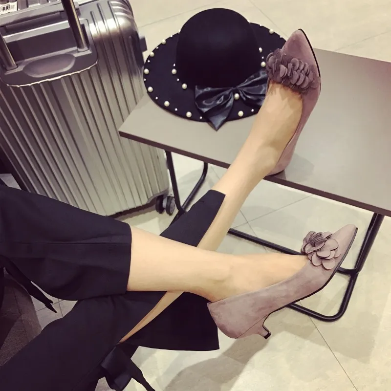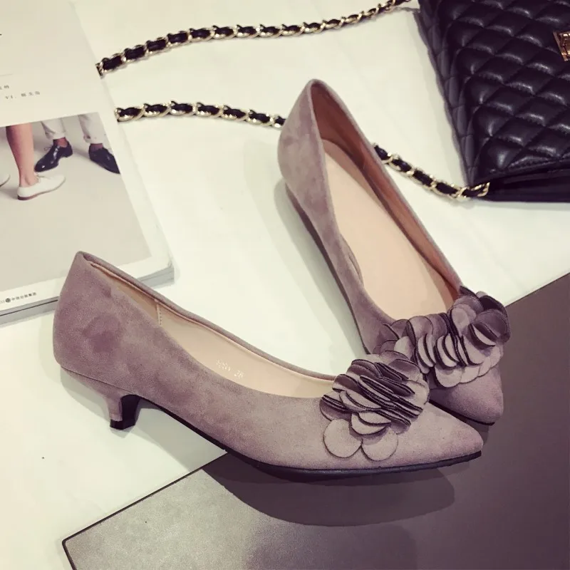 2017New Arrived Brand Women Shoes Slip-On Pumps Woman Low Spike Heel Pumps Flower Female Shoes Ladies Single Shoes Zapatos Mujer
