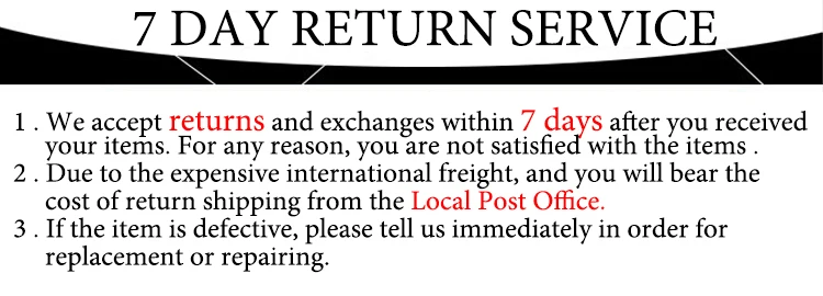 - si usted no está satisfecho cuando usted recibe el artículo, por favor devuelva el plazo de 7 días para un reemplazo o reembolso del dinero. por favor, póngase en contacto con nosotros para una vuelta guía antes de que usted lo vuelva.