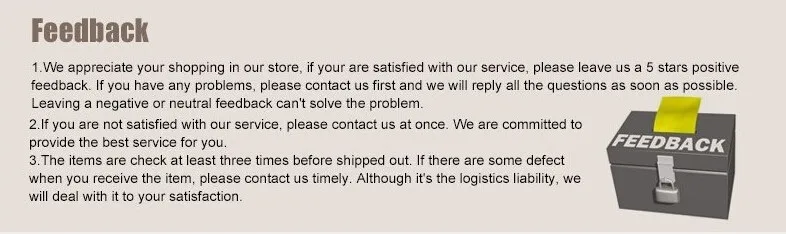 Any problem or question with the order, please do contact us first by email or sending us message on Aliexpress, we’ll reply you within 1 business day or less. We promise to provide you satisfied solution. Thanks!!!