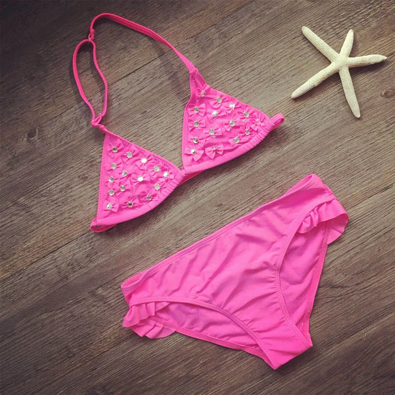 2018 5-12years girls bikini stone bow girls’s swimwear kids bathing suit swimwear swimsuit for girls biquini infantil 303