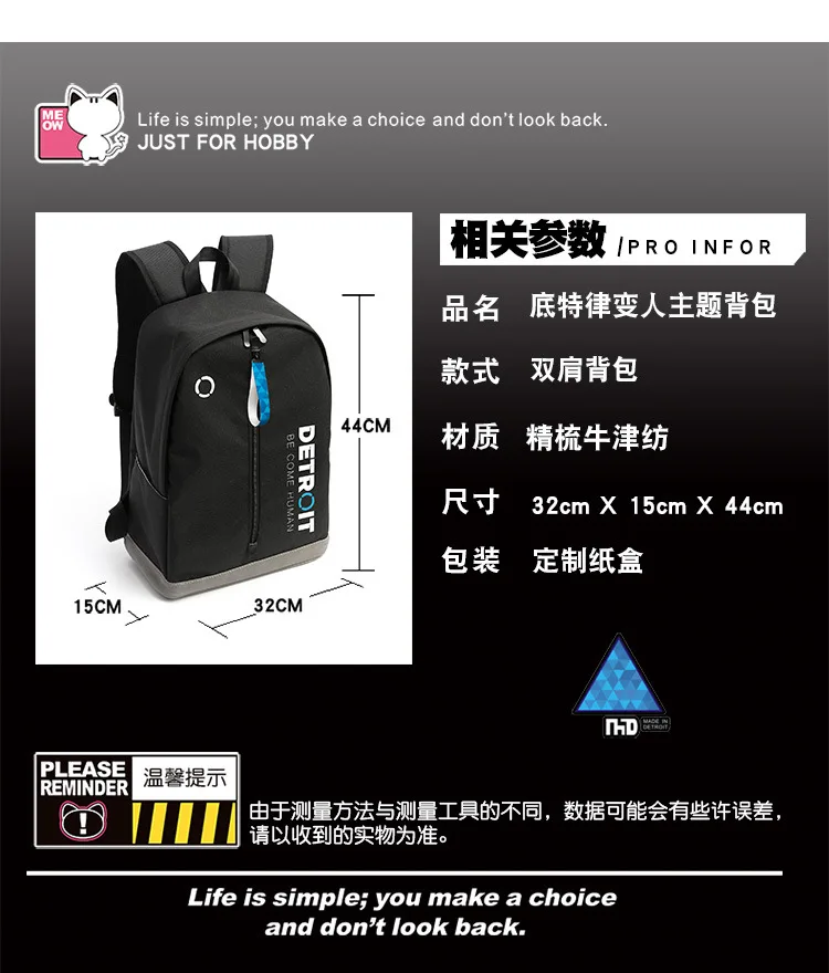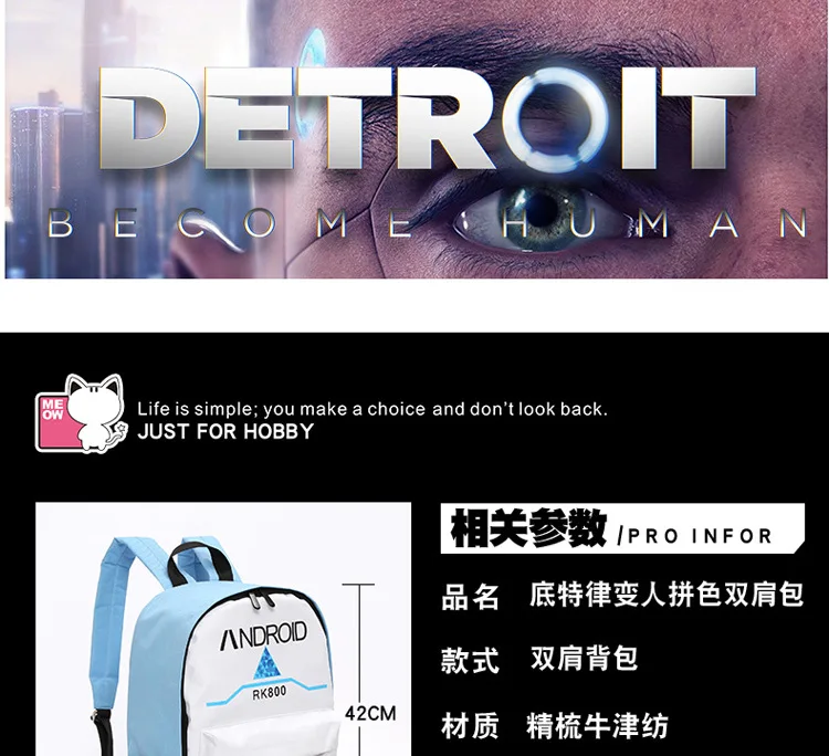 2018 Anime Game Detroit:Become Human Design Backpack Bag School Backpacks Laptop Shoulder Bags Cosplay Mochila