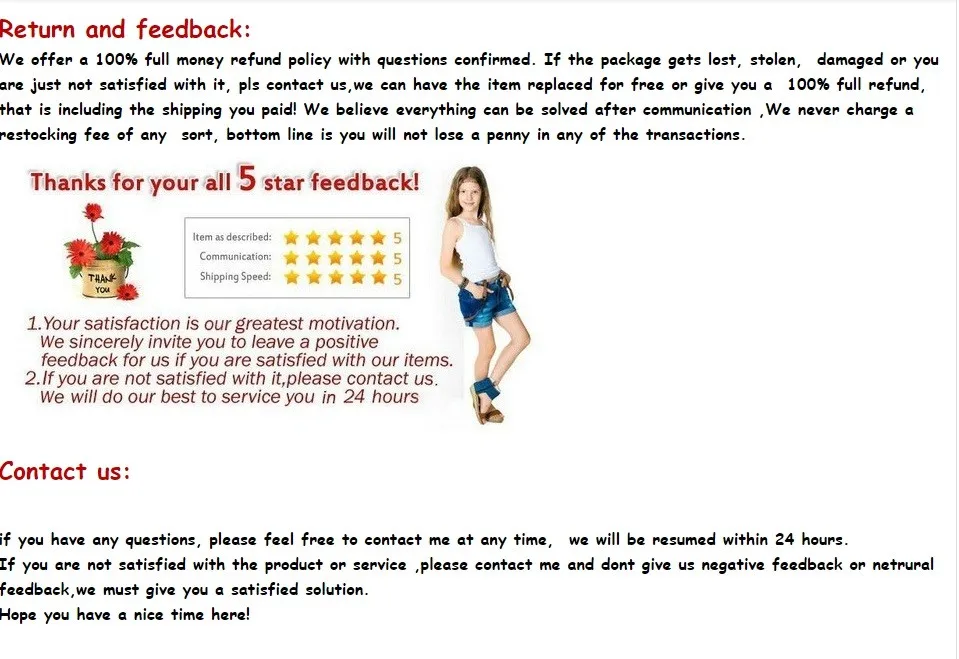 • If you did not receive the product within the guaranteed time( 45 days not including 2-5 day processing) you can request a refund or a reshipment.
