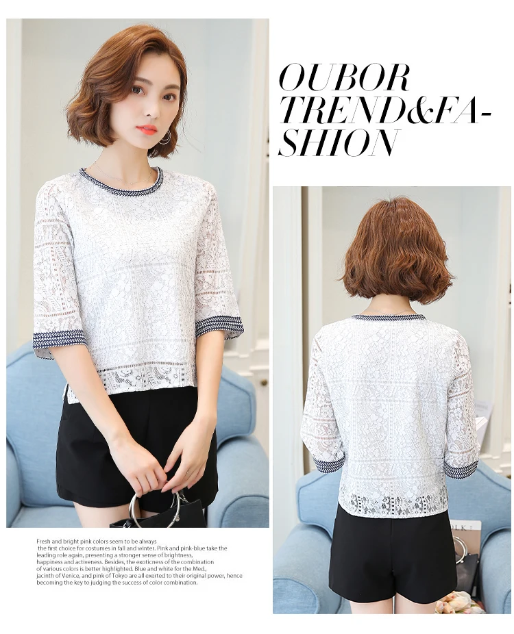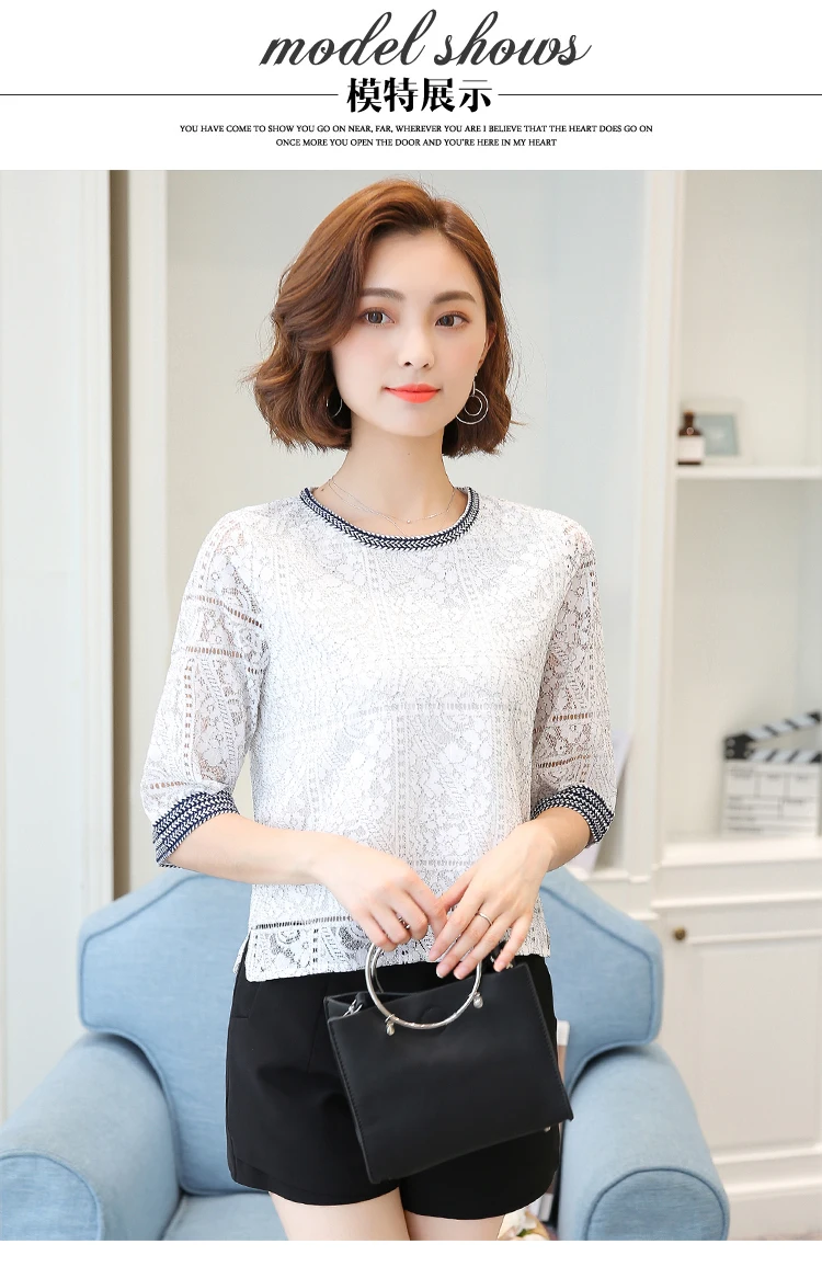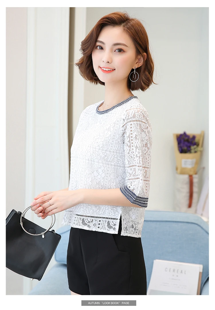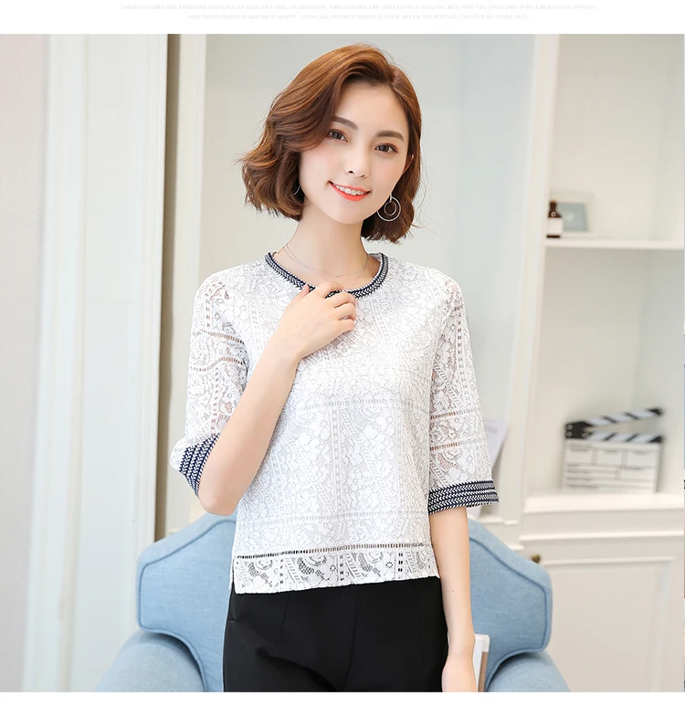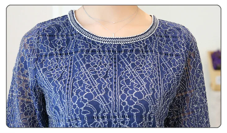 2018 Autumn new casual loose hollow embossed women blouse round neck plus size fashion lace women shirt top blusas 168A 30