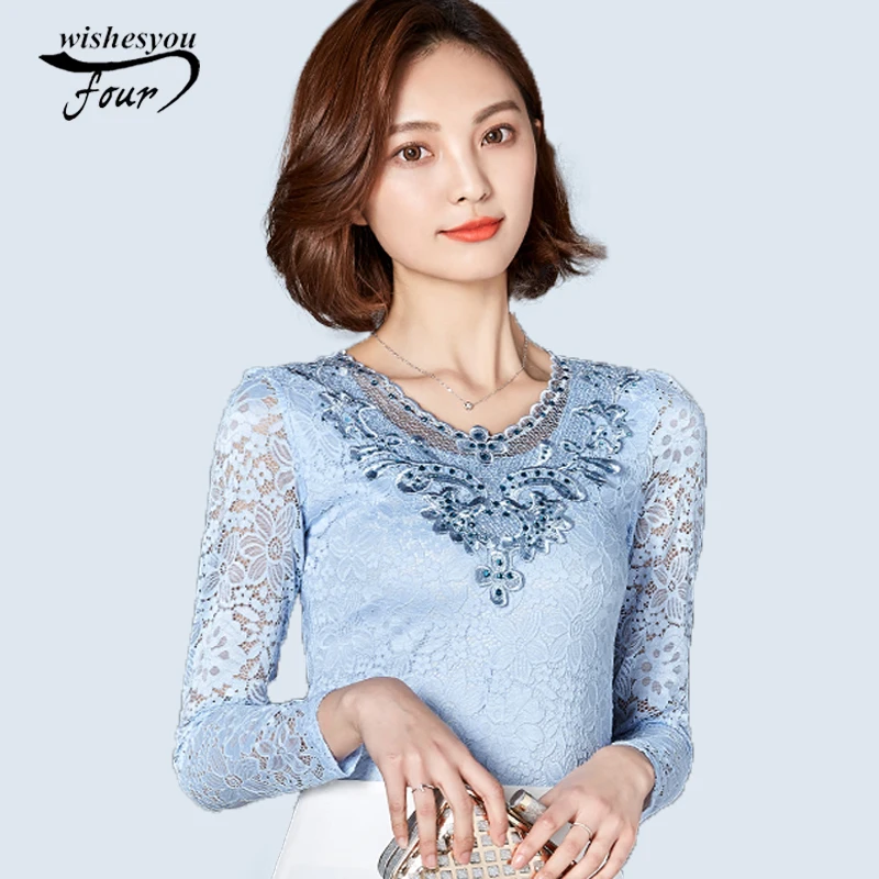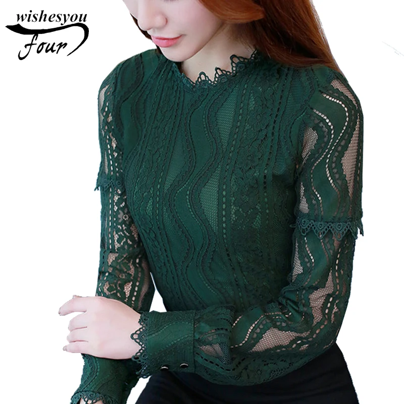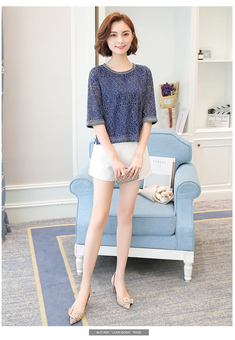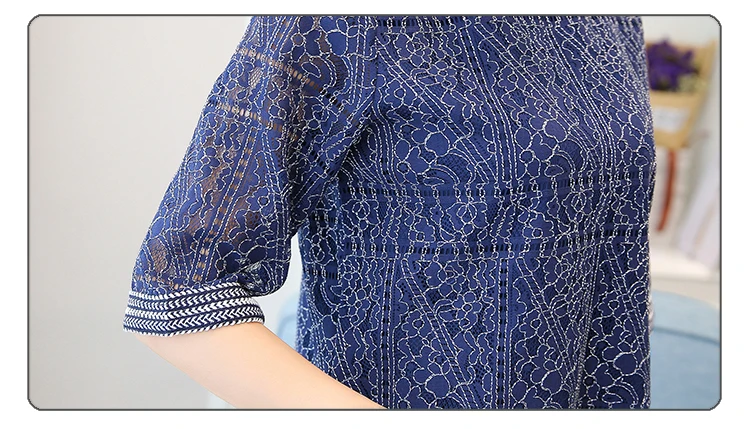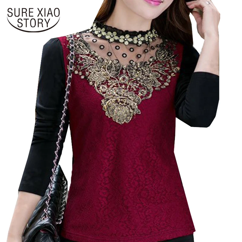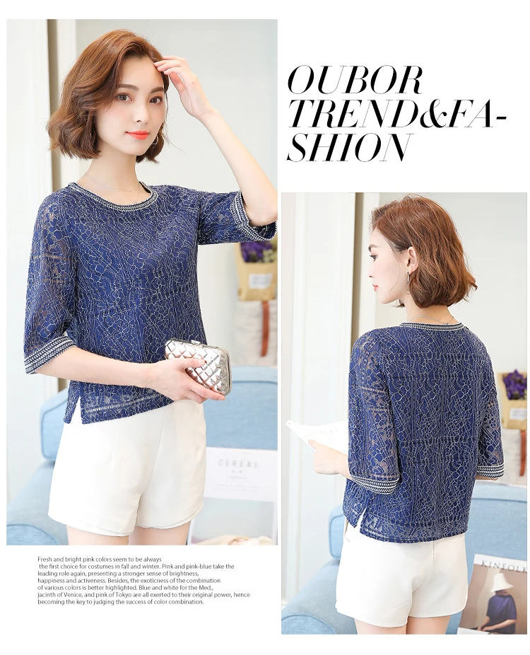 2018 Autumn new casual loose hollow embossed women blouse round neck plus size fashion lace women shirt top blusas 168A 30