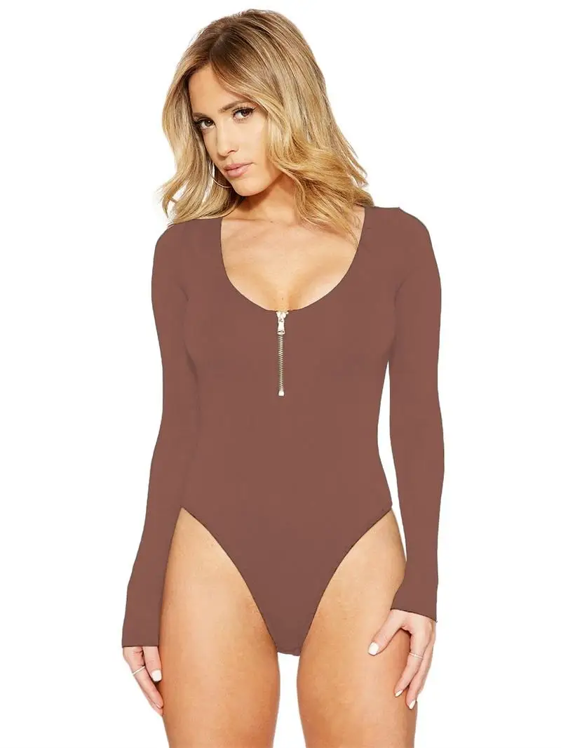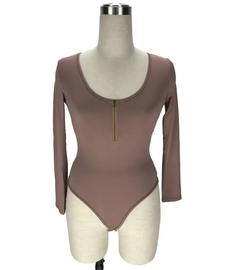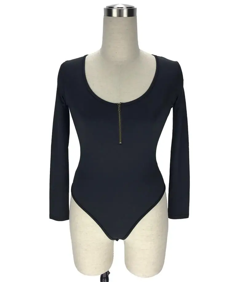 2018 autumn new sexy O-neck zipper long-sleeved T-shirt round neck sexy 10 color 6 yards onesies