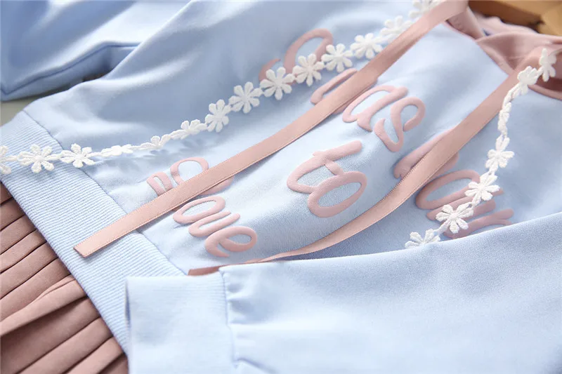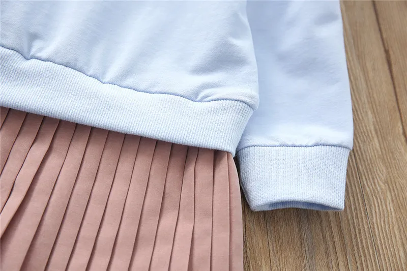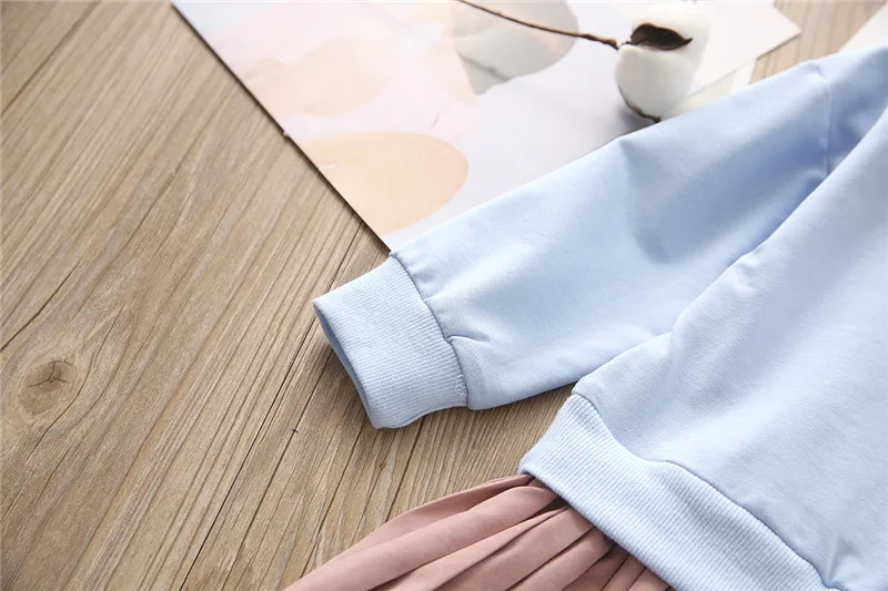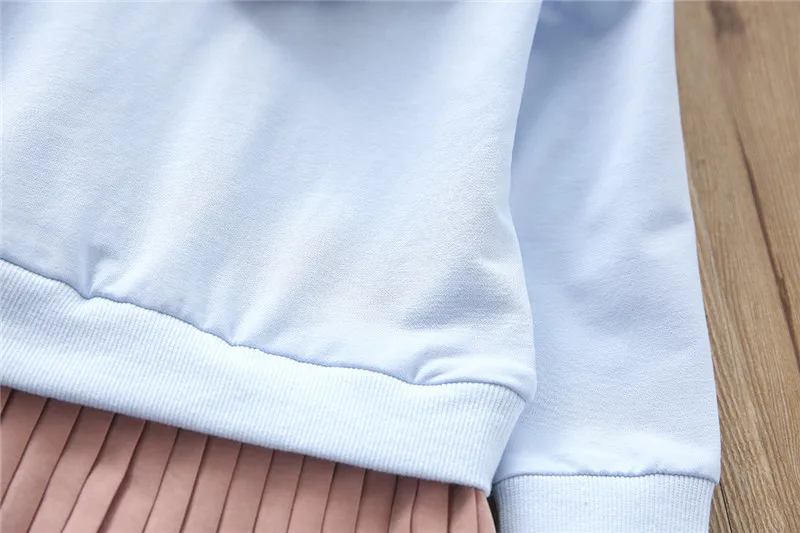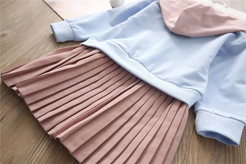 2018 Autumn New Trend Female Middle and Small Children’s Round Neck Hooded Pleated Dress Cute Fashion Comfortable Dress