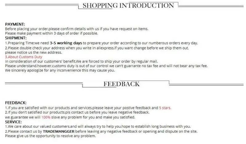 • If you did not receive the product within the guaranteed time( 45 days not including 2-5 day processing) you can request a refund or a reshipment.