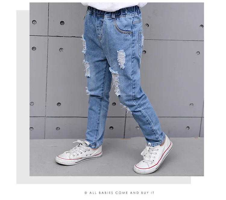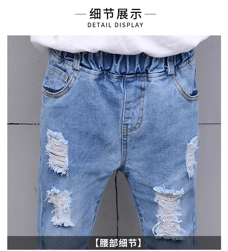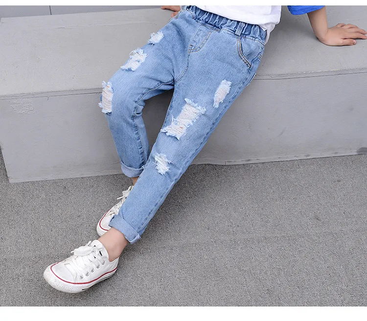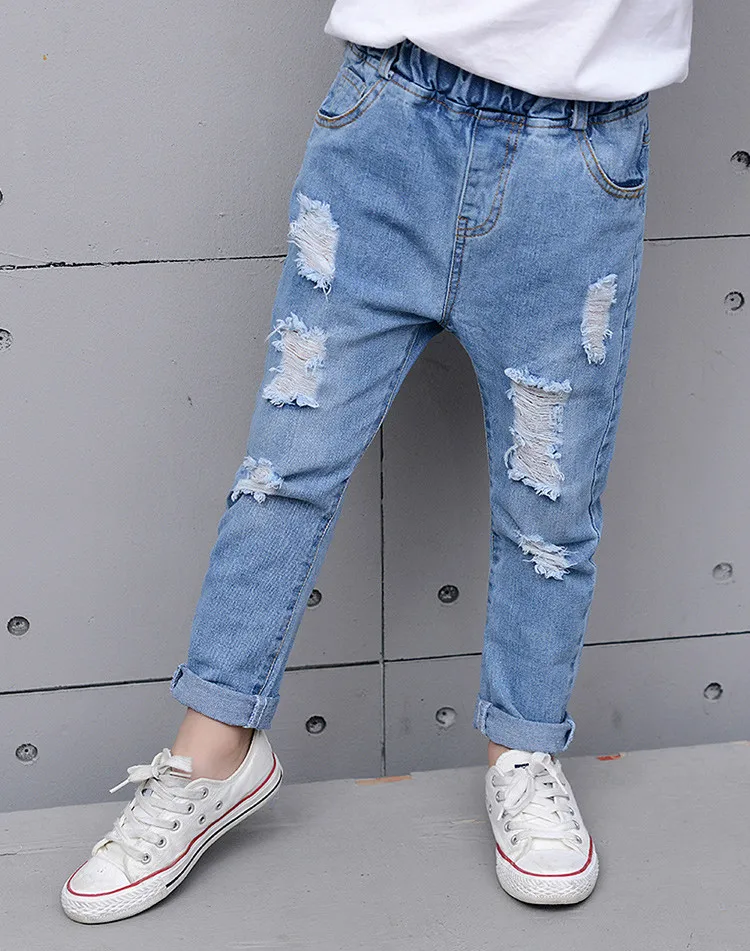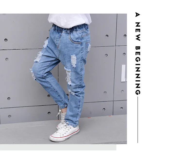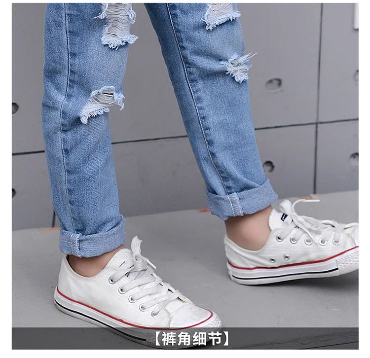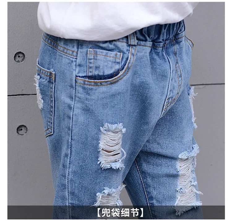 2018 Autumn Teenage Girl Boys Ripped Jeans Children Holes Jeans Big Kids Fashion Denim Trousers Boys Clothing 10 Years 4-13Y
