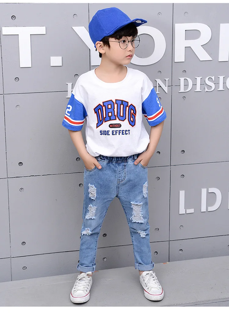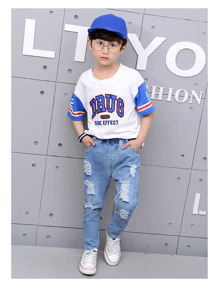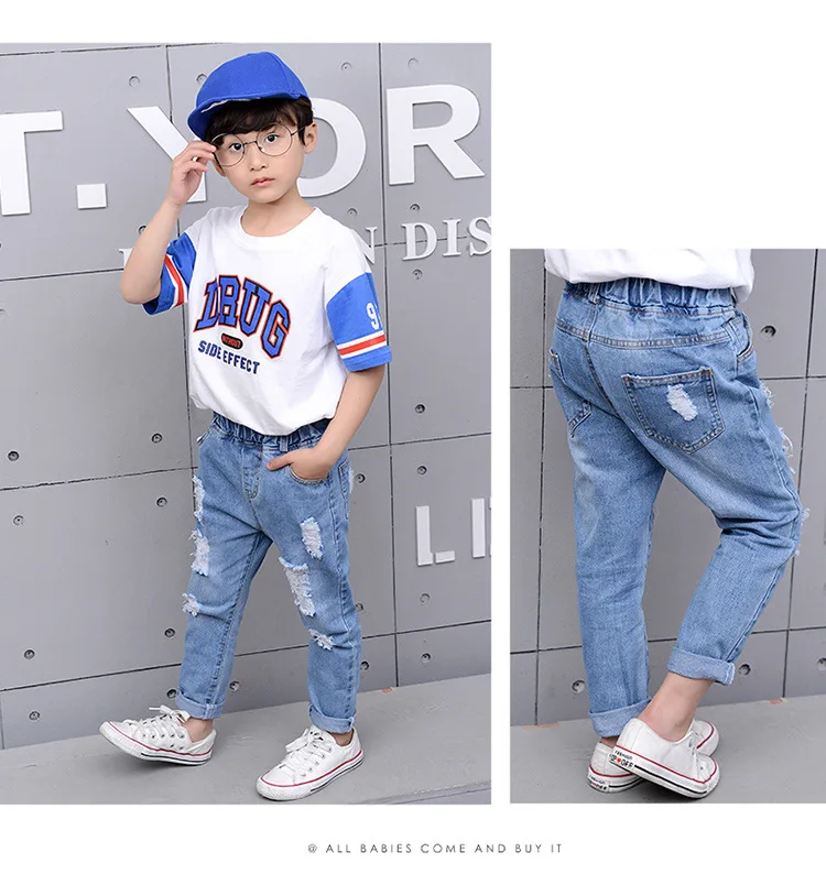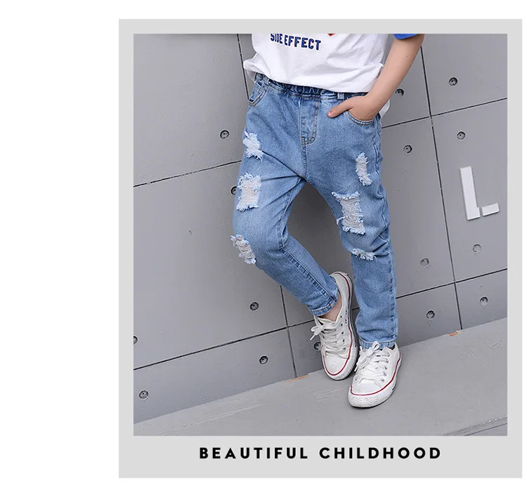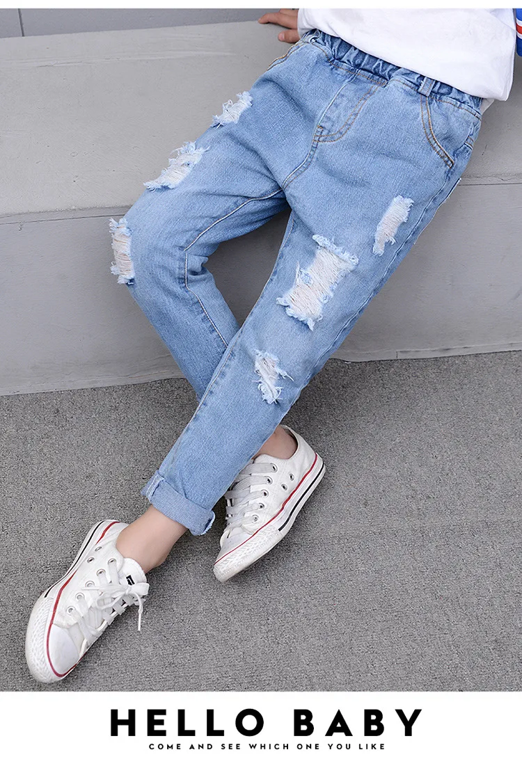2018 Autumn Teenage Girl Boys Ripped Jeans Children Holes Jeans Big Kids Fashion Denim Trousers Boys Clothing 10 Years 4-13Y