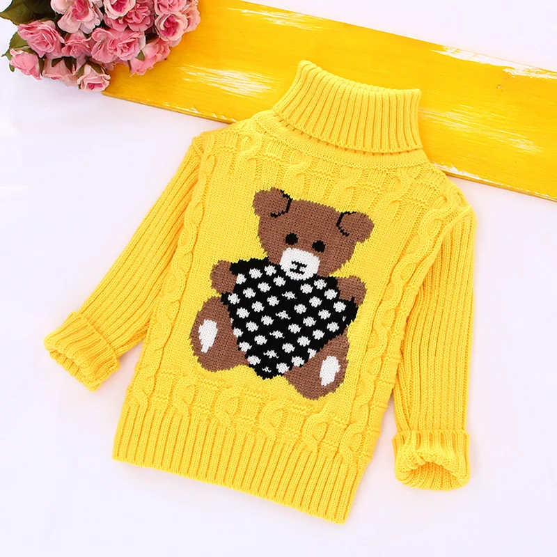2018 autumn winter Infant Baby Boys Girls Children Kids Knitted bear Pullovers Turtleneck Warm Outerwear Sweaters 1-8 year