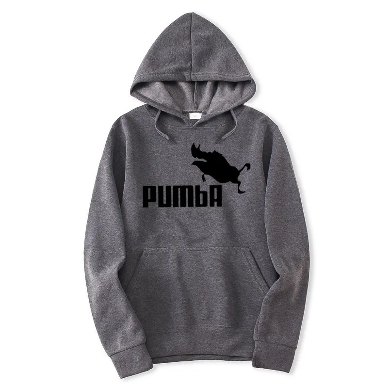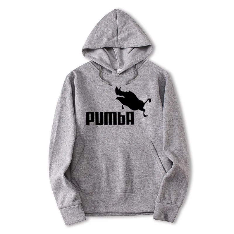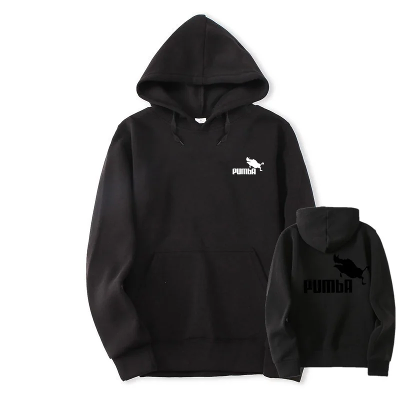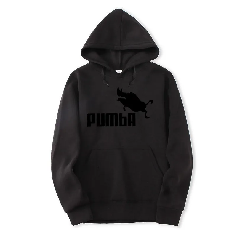 2018 Autumn Winter Men Hoodies Black White Pumba Printing Hooded Sweatshirts Streetwear Custom High Quality Long Sleeve Tops