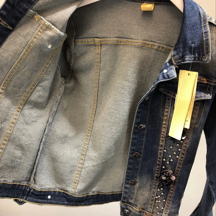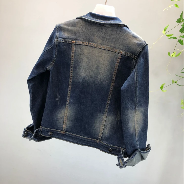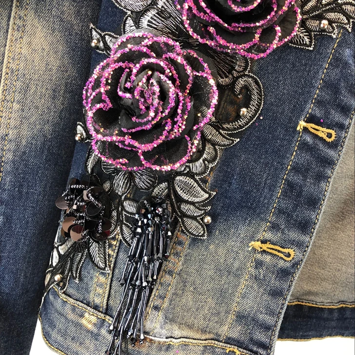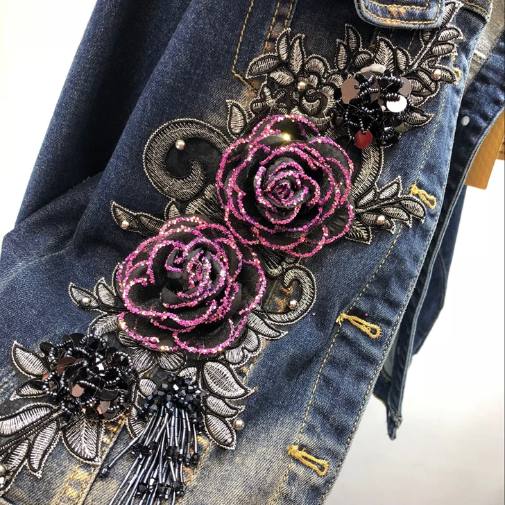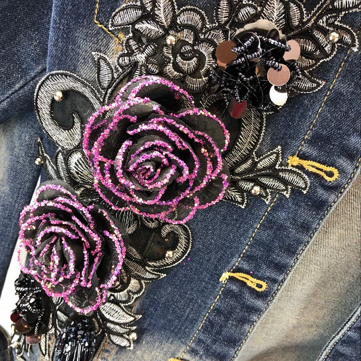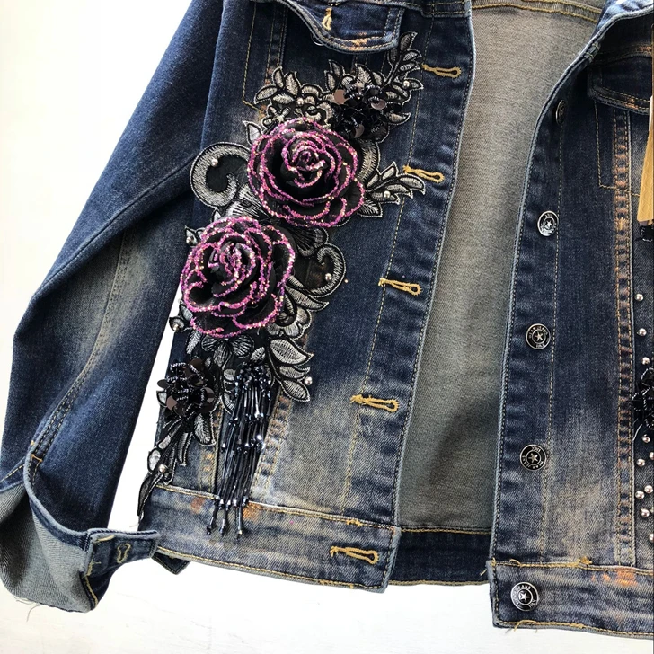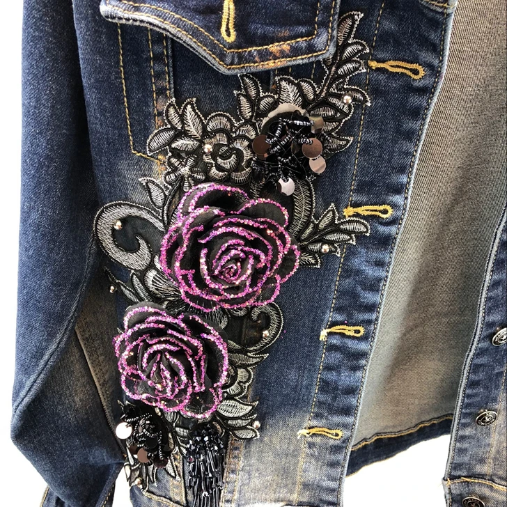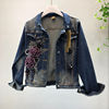 2018 Autumn Winter Woman Long-sleeved Denim Jackets Embroidered Coat + Dark Blue Retro Jeans Two Piece Slim Pencel Pants Set