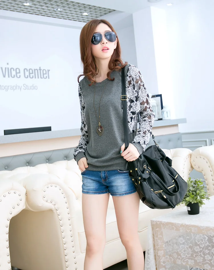 2018 Autumn Winter Women Blouses Shirts Fashion Lace Patchwork Pullover Tops Women Casual Long Batwing Sleeve Shirts XXL |