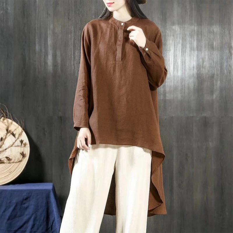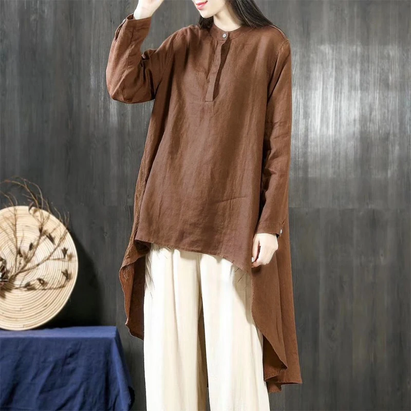 2018 Autumn ZANZEA Women O Neck Long Sleeve Solid Irregular Hem Blouse Casual Cotton Linen Top Shirt Ladies Work OL Blusas