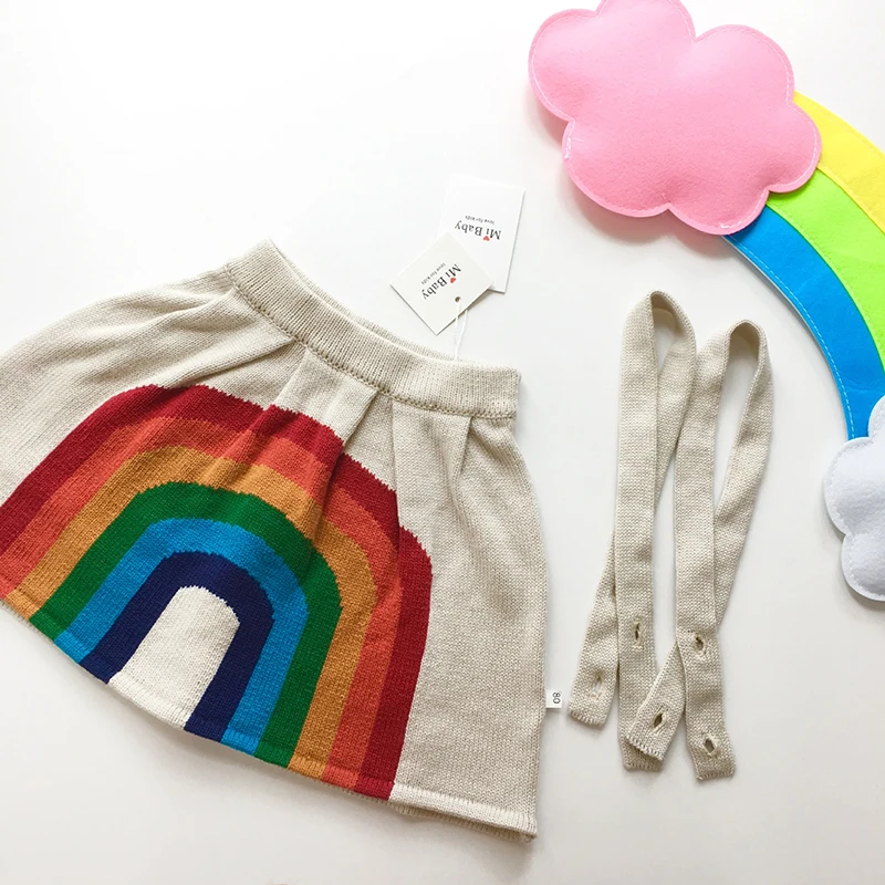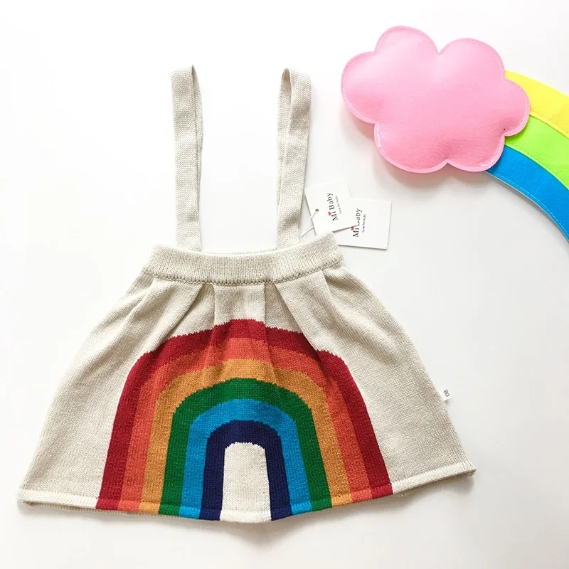 2018 Baby Girls Dress Baby Girls Clothes Kids Knitting Rainbow Tutu Dress Party Wedding Dance Dress 0-6Yrs Fashion Brand Dresses