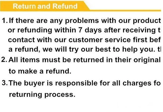• If you do not want the product you’ve received you may request a refund but you must return the item at your expense and the item must be unused.