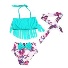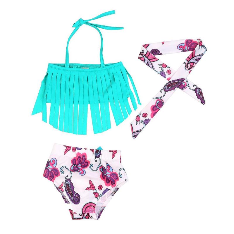 2018 Baby Girls Summer Swimwear Tassel Kids Bikini Set Cute Tankini sweet Split Swimsuit Toddler Children Beach Bather Suit NEW