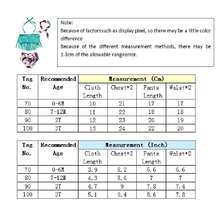 NO. age Cloth Length ChestX2 Pants Length WaistX2