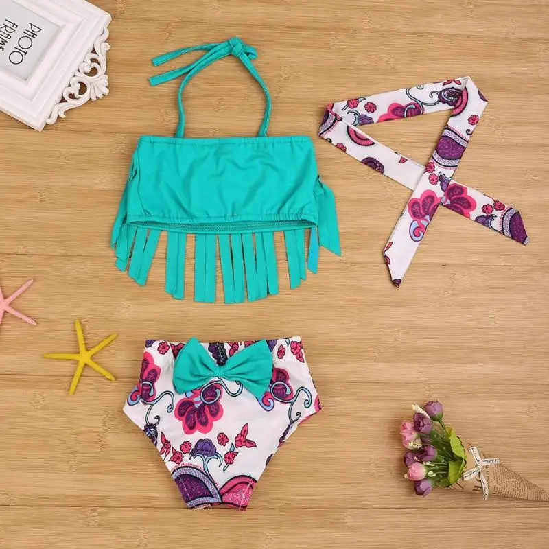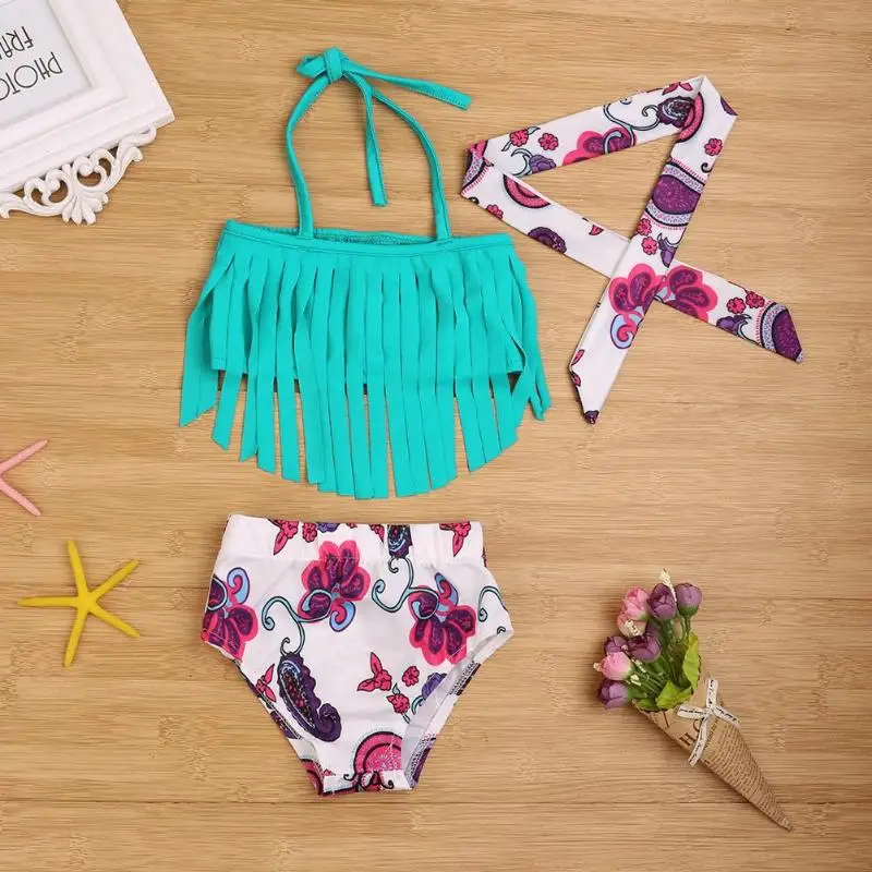 2018 Baby Girls Summer Swimwear Tassel Kids Bikini Set Cute Tankini sweet Split Swimsuit Toddler Children Beach Bather Suit NEW