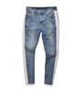 2018 Best version Justin Bieber FEAR OF GOD Ripped Destroyed men jeans Hip Hop White stripe stitching Bottom Side zipper Jeans