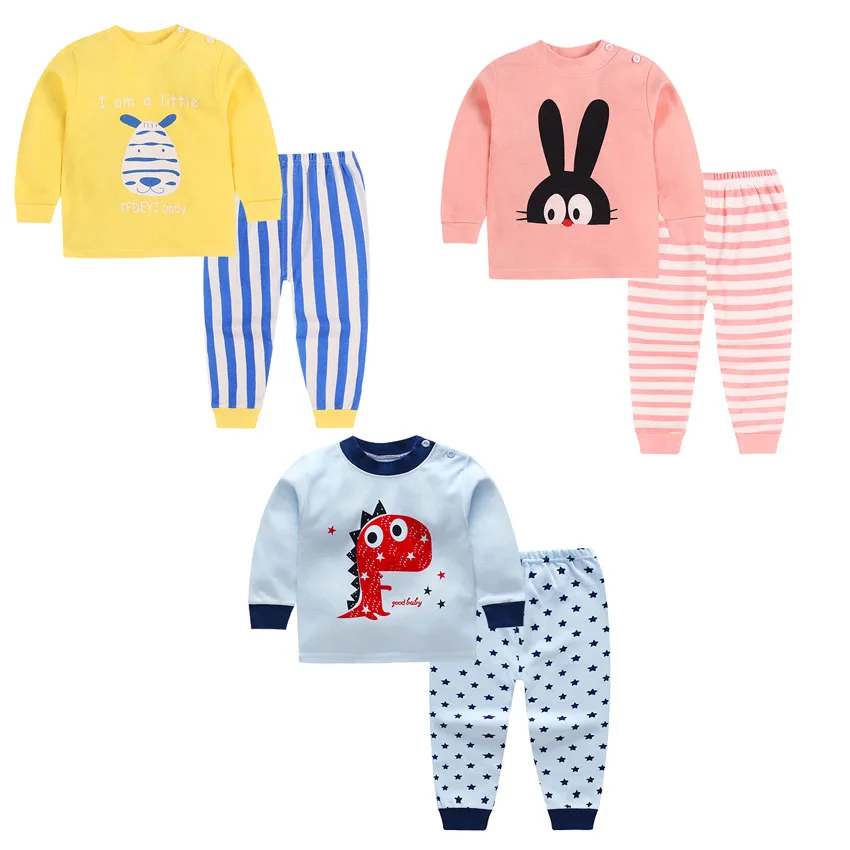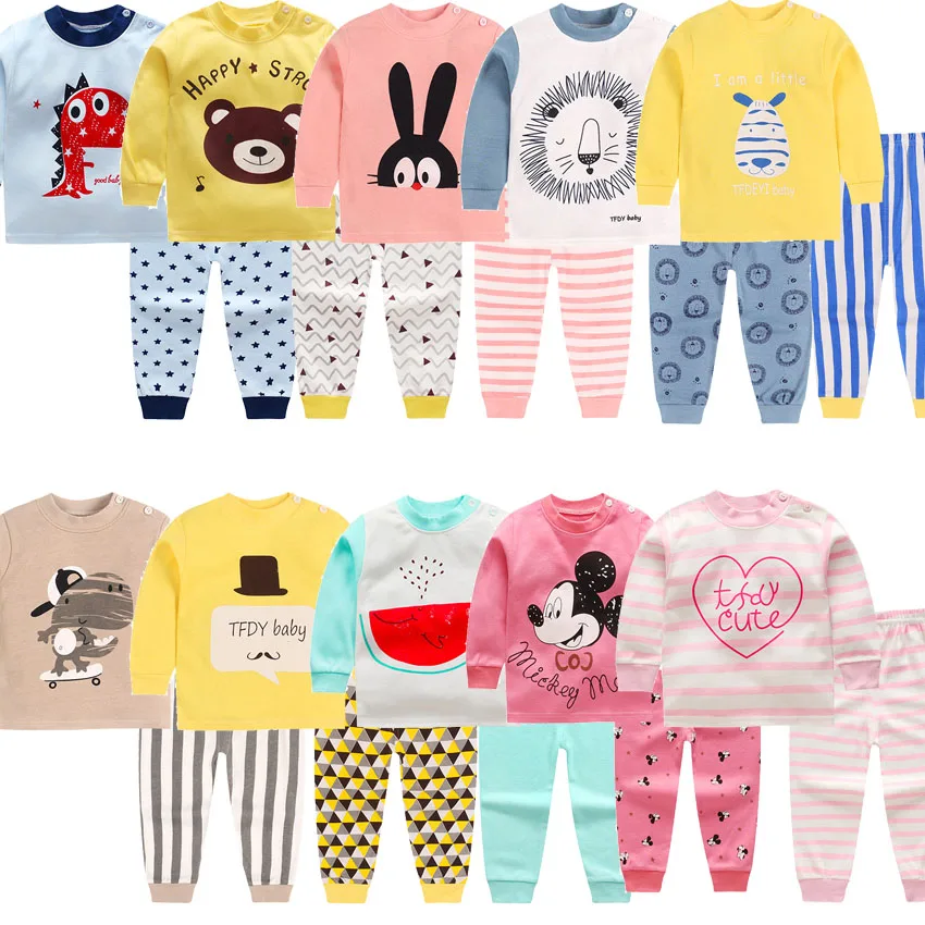 2018 Brand New Pyjamas Baby Boys Sleepwear Kids 100% Cotton Long Sleeve Fashion Cartoon Panda Pajamas For Girls