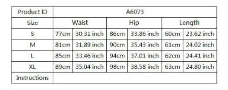 Size table:
