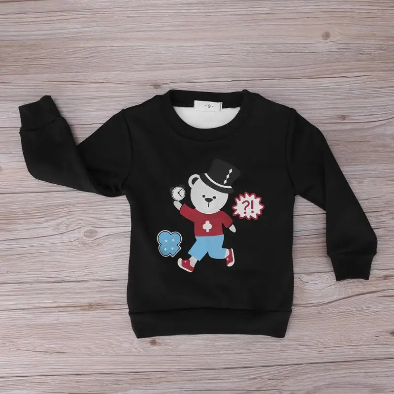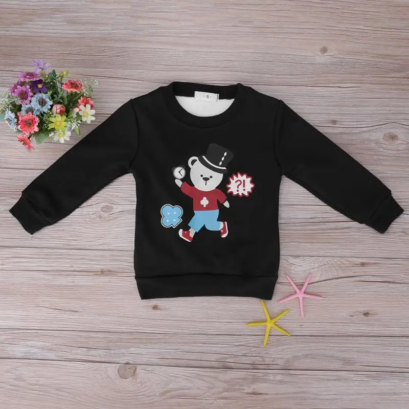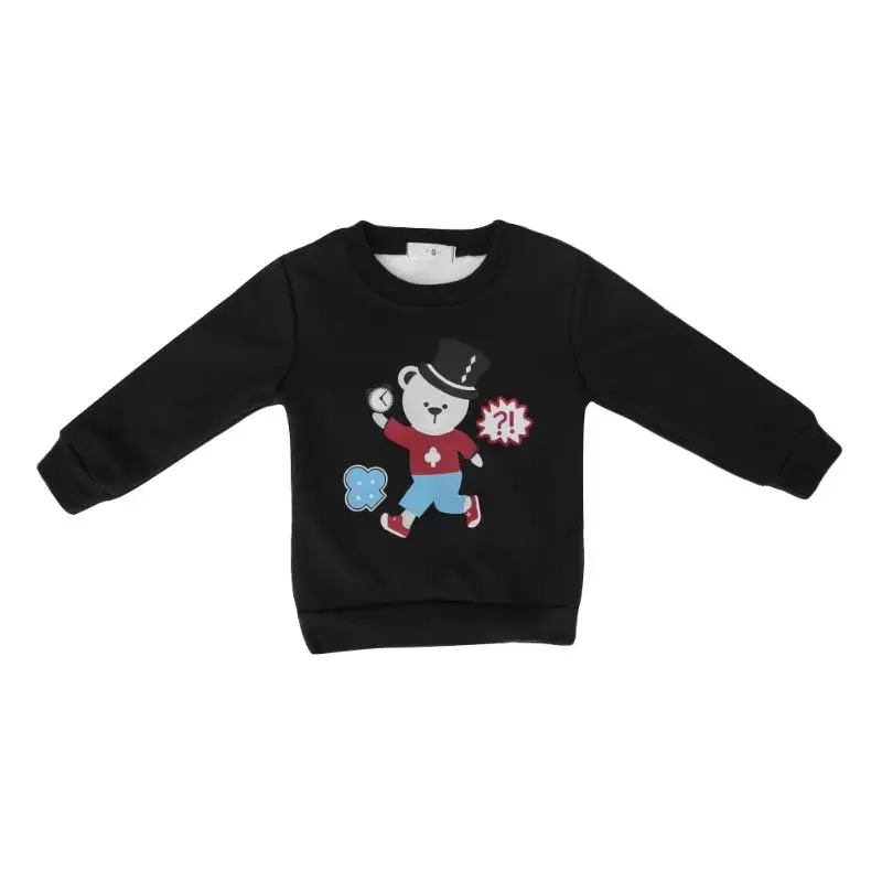 2018 Cartoon Children Kids Pullover Boy Girl Fleece Thicken Bear-Alarm Clock Print Sweatershirts Leisure Spring Baby Clothing