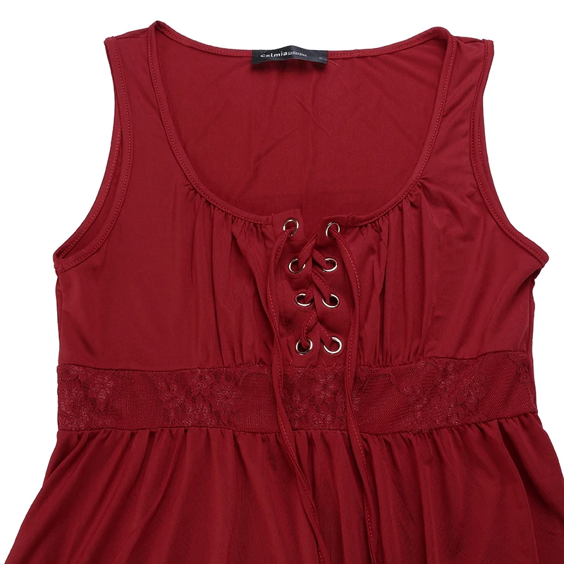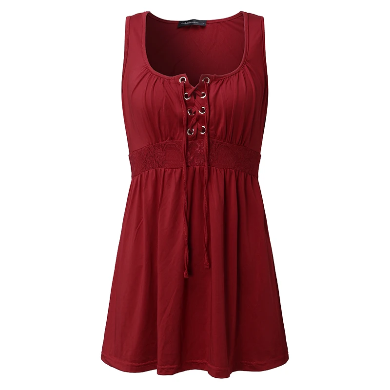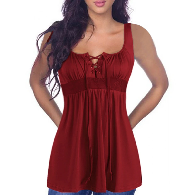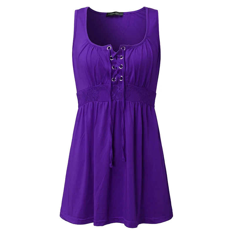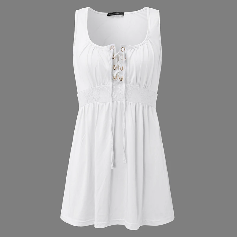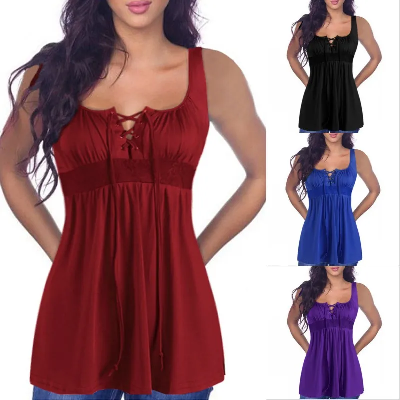 Product Description: Womens Sleeveless Lace-Up Stretch Plain Casual Long Tops