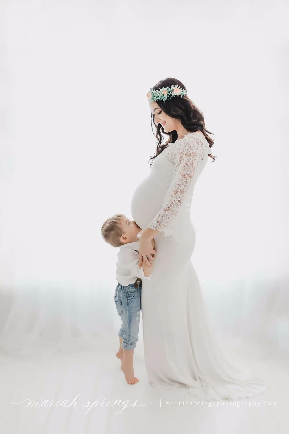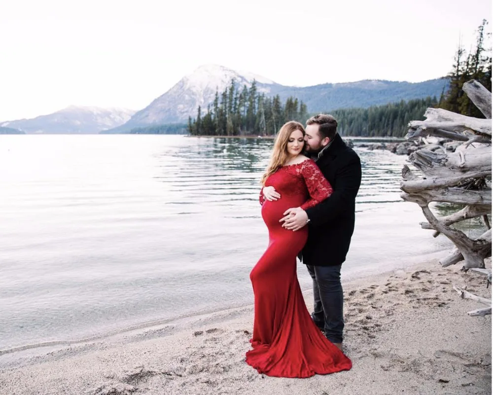 2018 Comfortable Lace Maternity Dresses Coat with Mercerized Cotton Dress Maternity Photography Props Fashion Pregnancy Dress