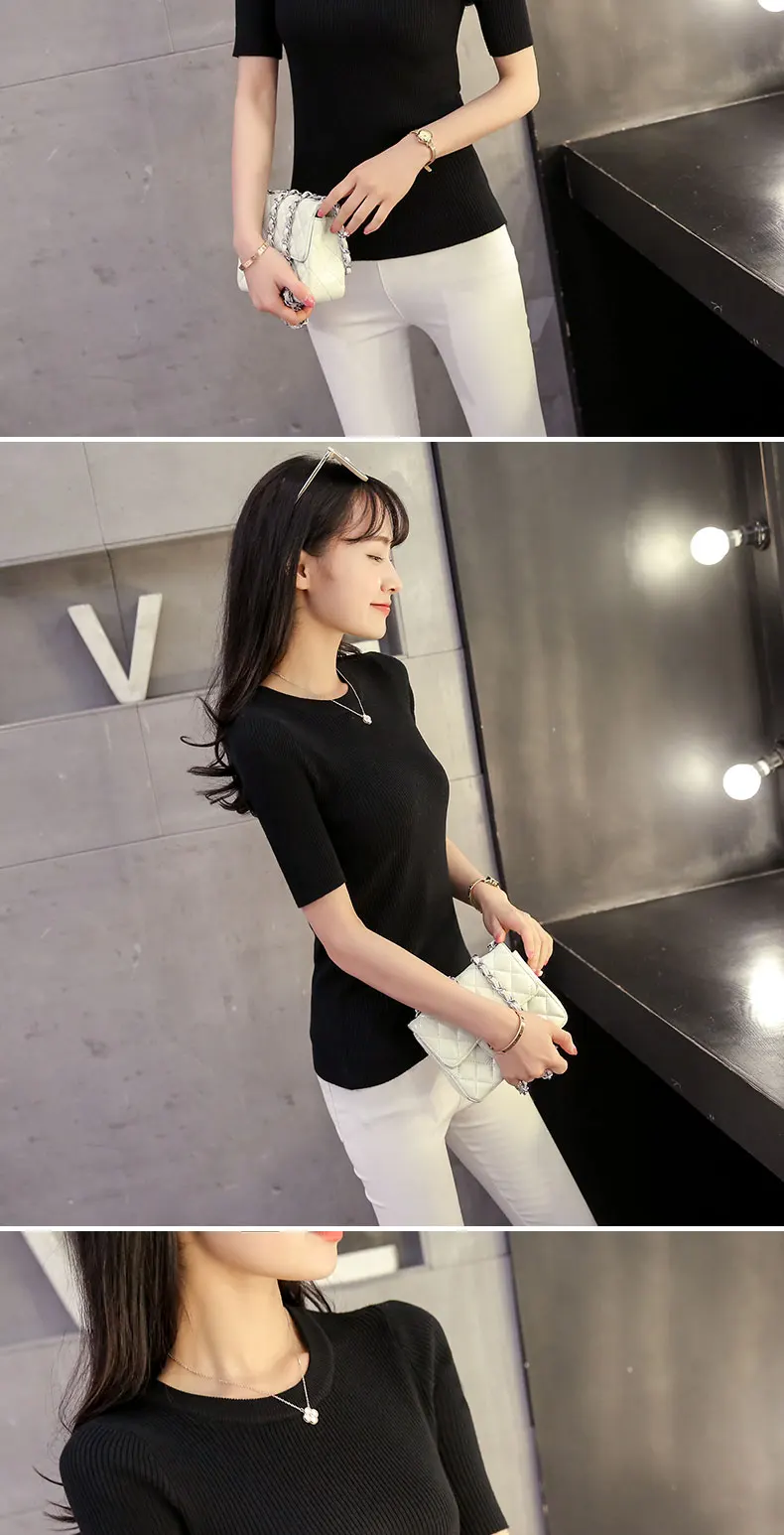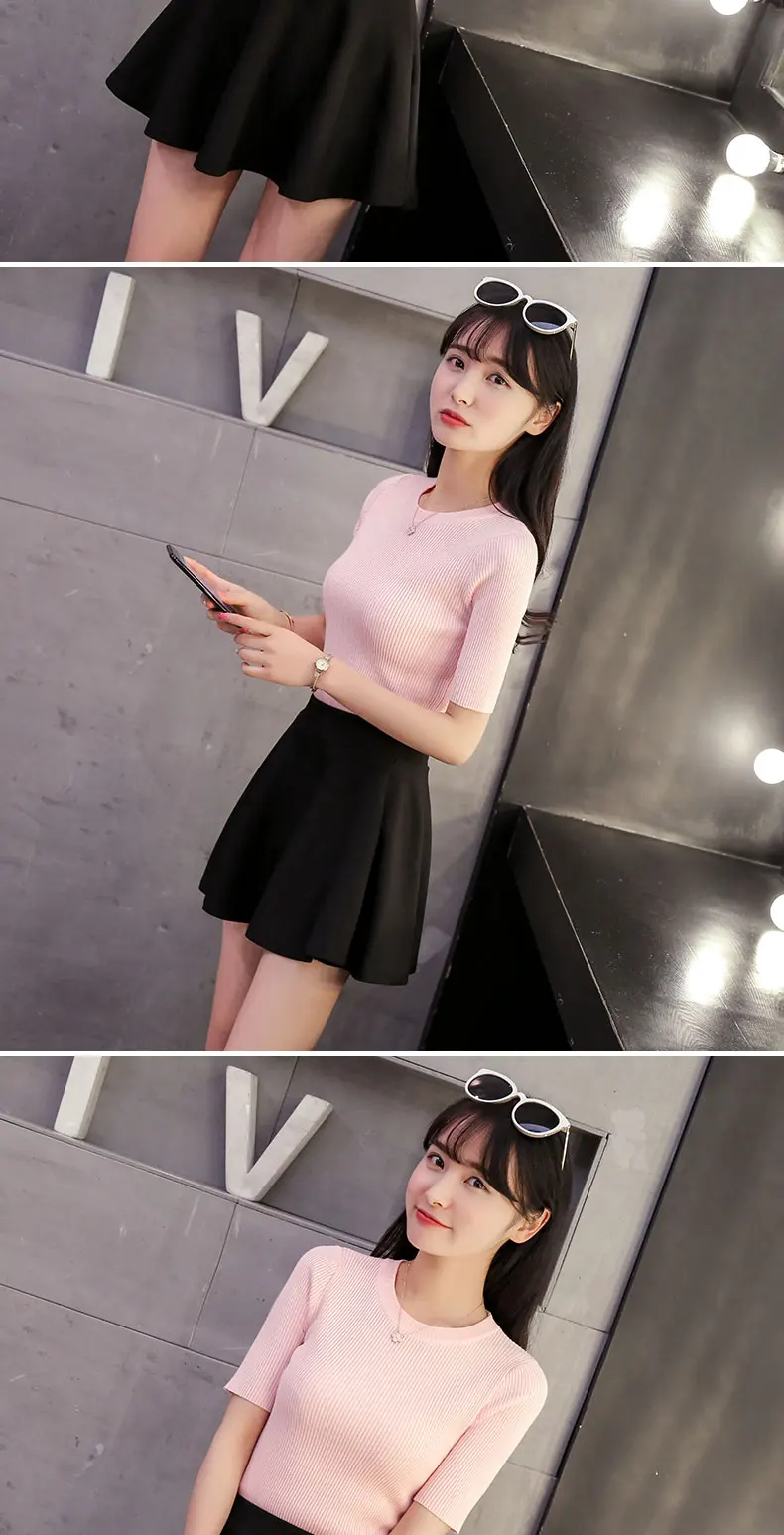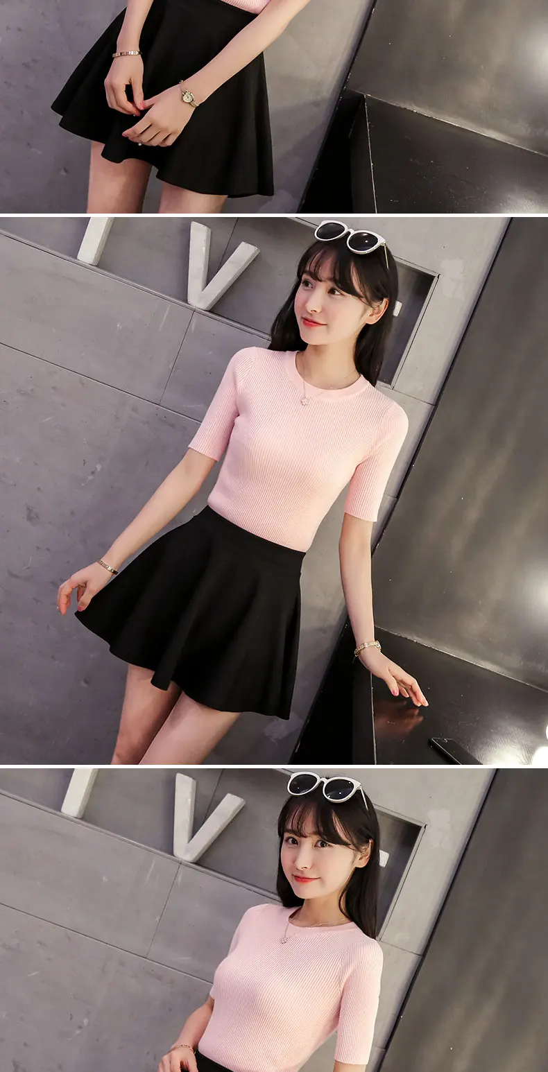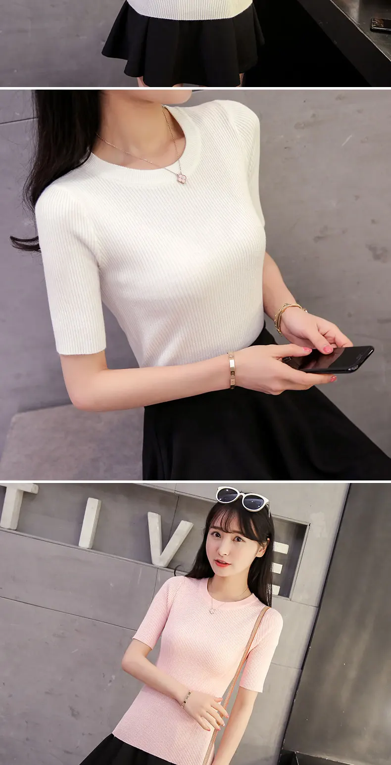 2018 Cotton Crewneck sweater female summer slim blouse color short thin sweater tight shirt