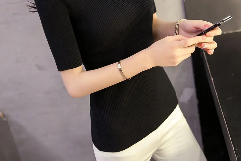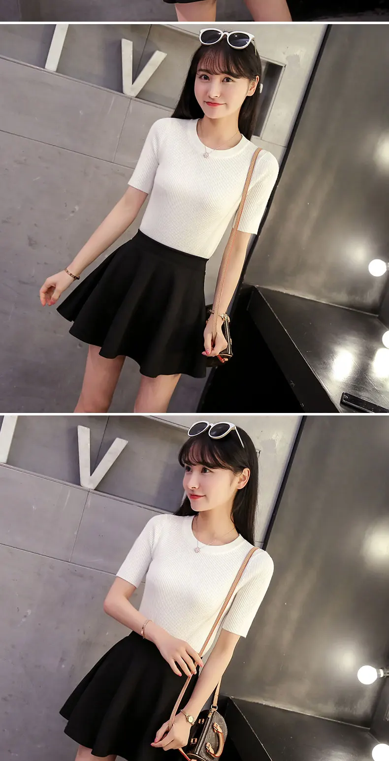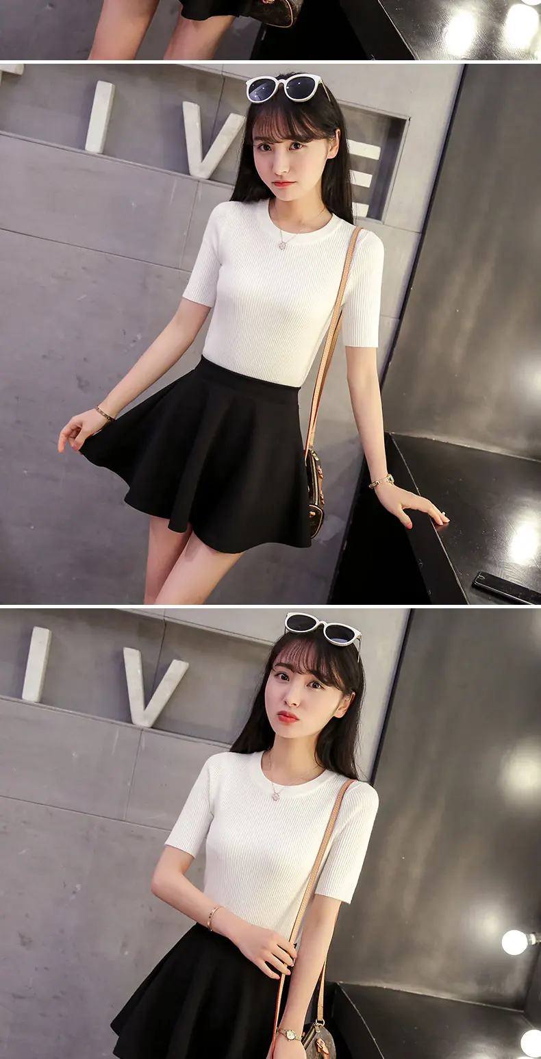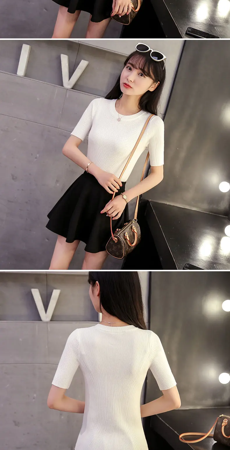2018 Cotton Crewneck sweater female summer slim blouse color short thin sweater tight shirt