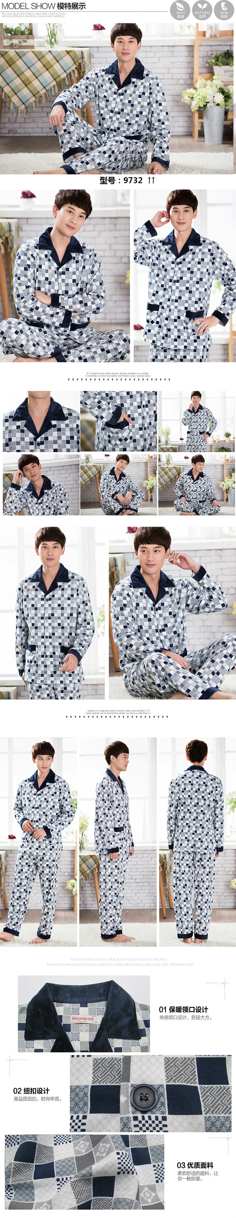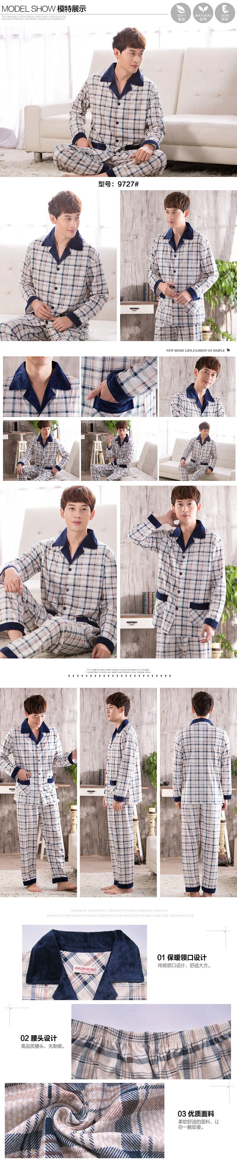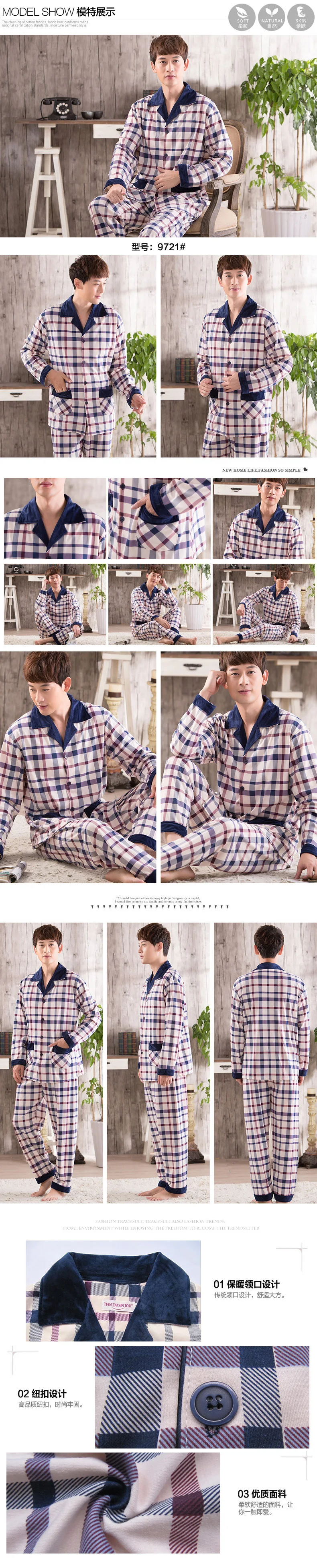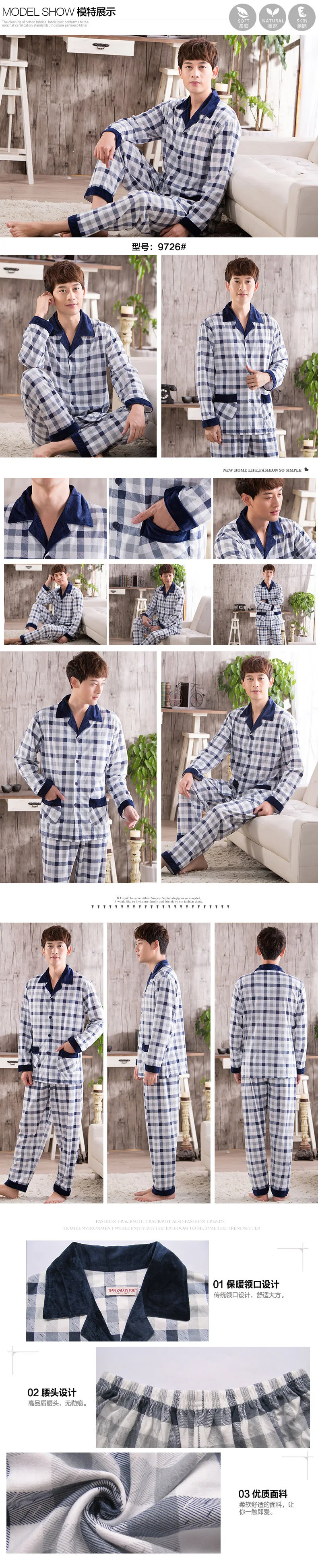 2018 Cotton Men Pajama Set Plaid Soft Sleepwear Men Suit Long Sleeves Pyjamas Men’s Pajamas Sets Cotton Men’s Sleepwears Sets XL