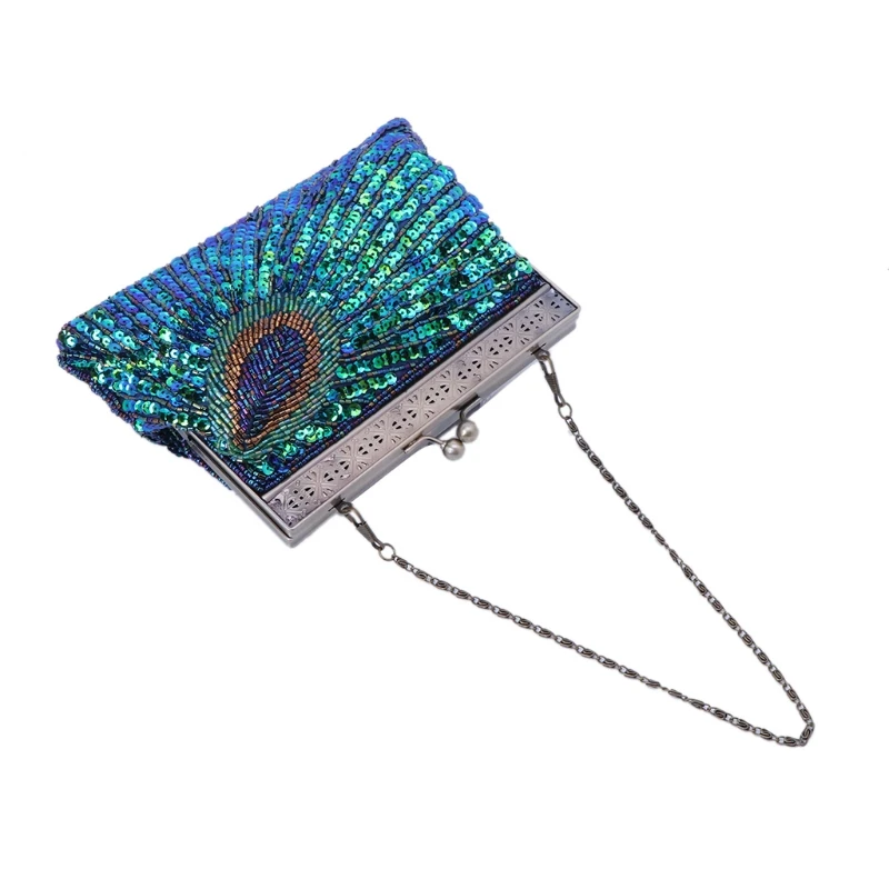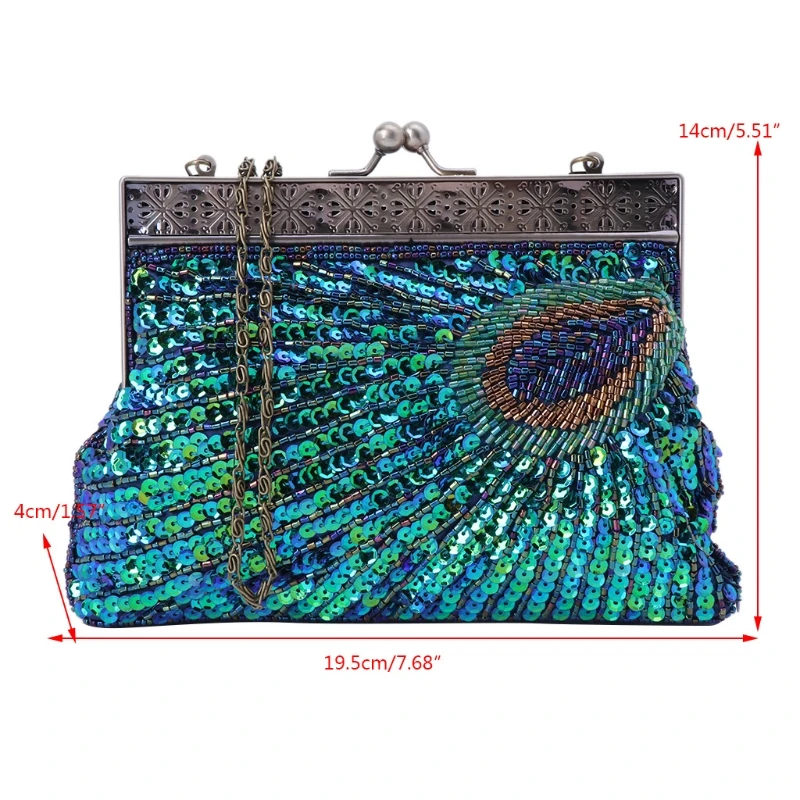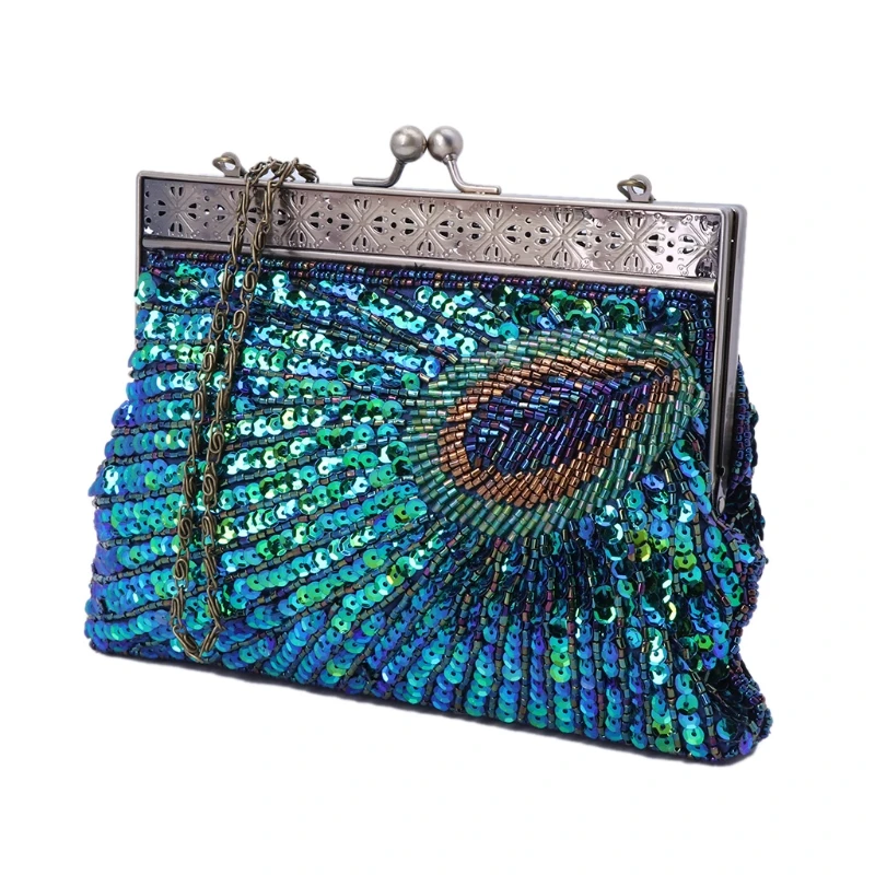 Charming peacock pearl beaded clutches is perfect fit for every one, CAN be used as a shoulder bag or crossbody bag,vintage chain can be hidden inside to make it into a clutch.