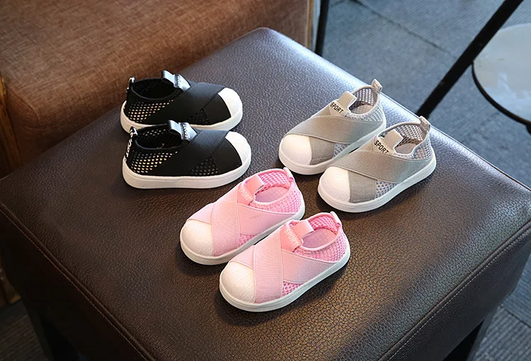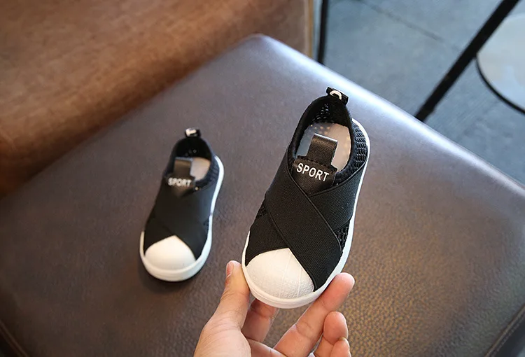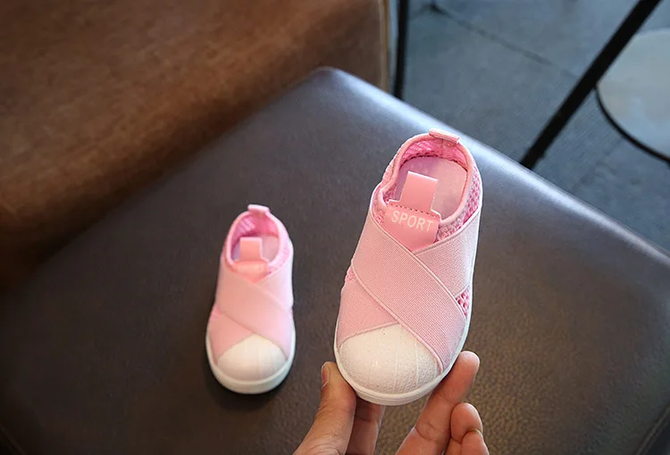 2018 European solid fashion baby casual shoes slip on fashion cool baby sneakers rubber canvas girls boys shoes