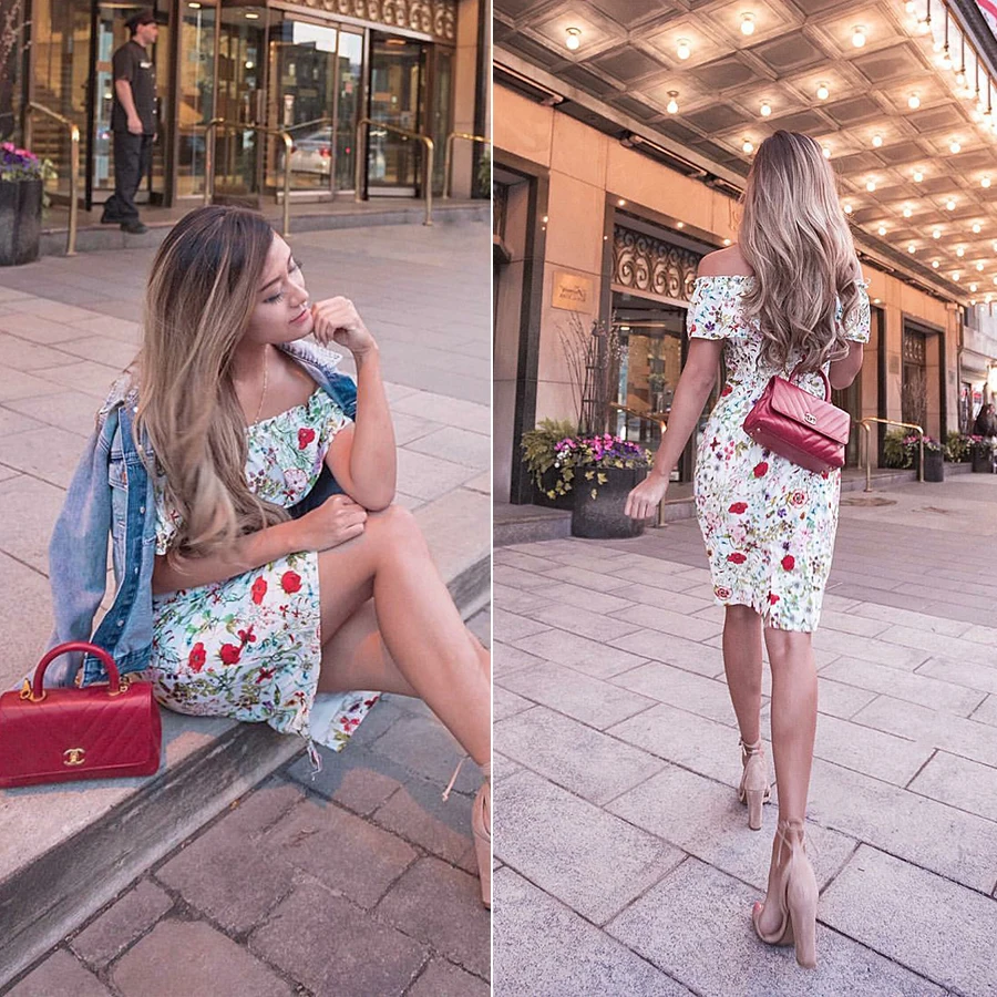 2018 explosion fashion print dress sexy word shoulder knees ladies dress fashion wild split dress