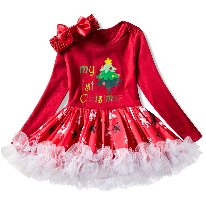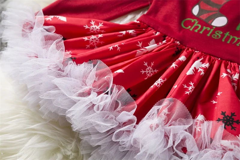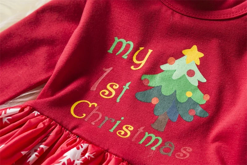 2018 Fancy Girls Christmas Tutu Dresses Toddler Girl Red Christmas Long Sleeve Dresses Baby Girl New Year Costume Party Clothes