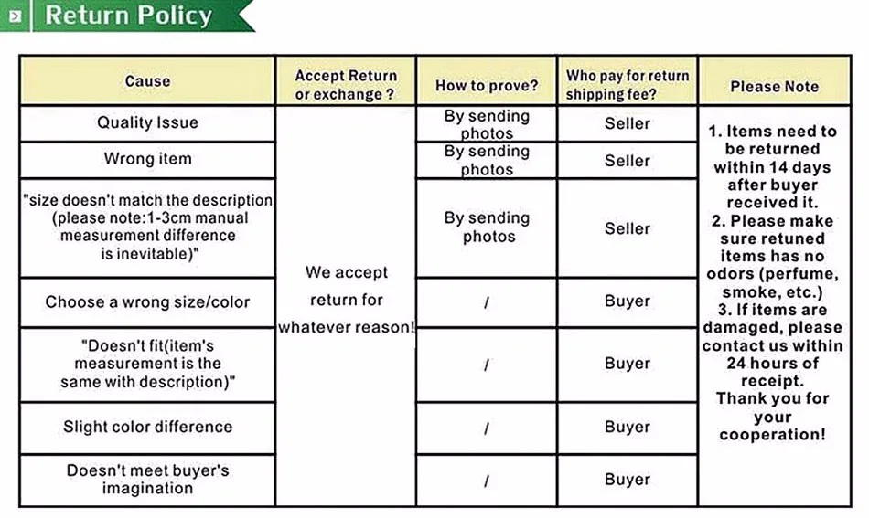 If for any reason you would like to exchange your product, perhaps for a different size in clothing. You must contact us first and we will guide you through the steps.