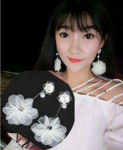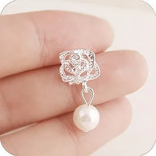 2018 Fashion Camellia Rose imitation pearl earrings female jewelry wholesale free shipping