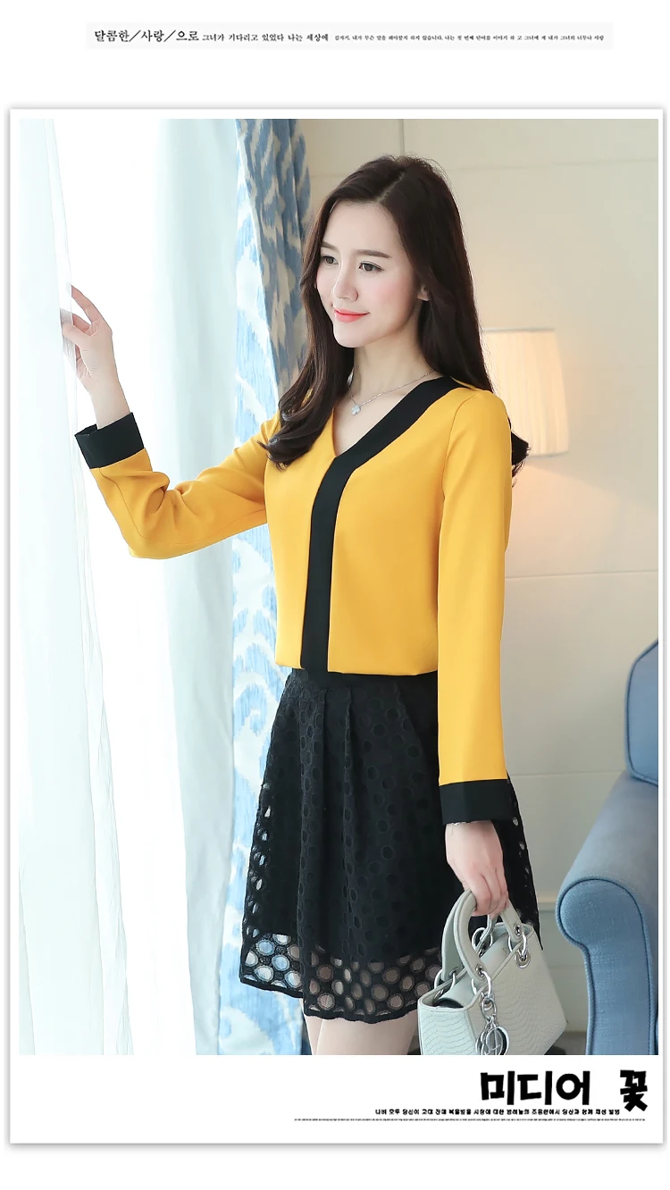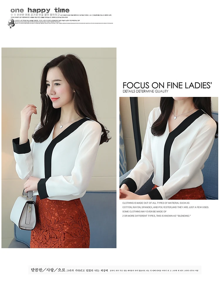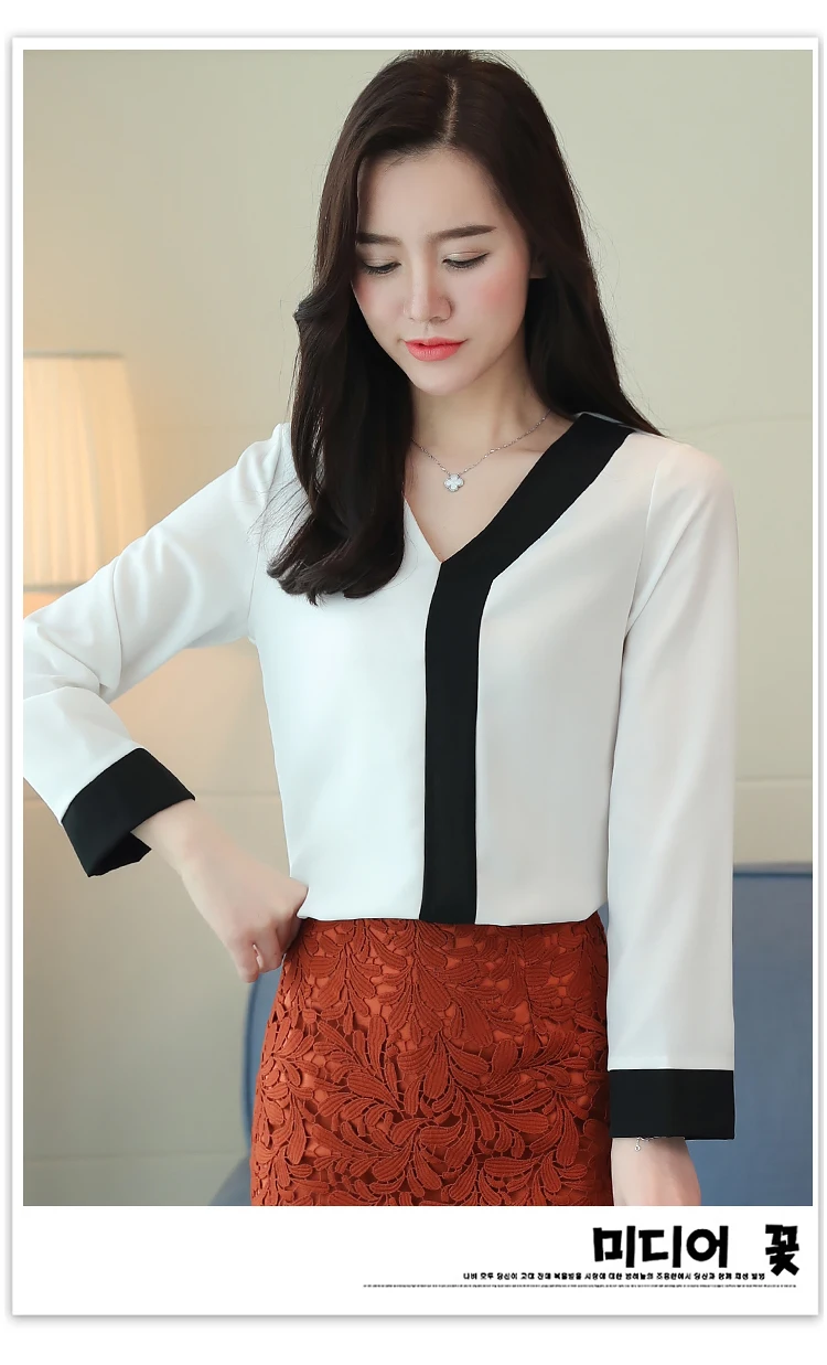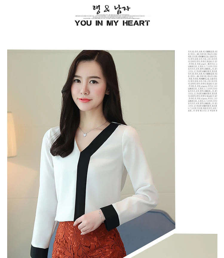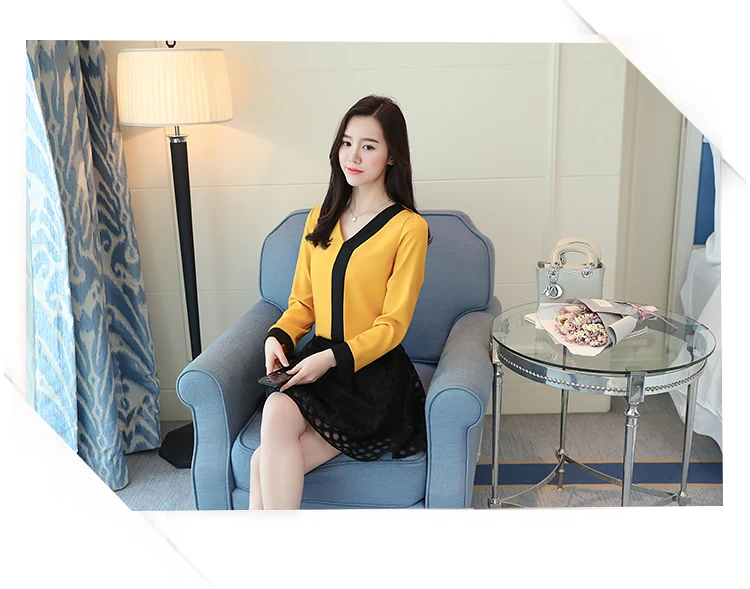 2018 fashion chiffon office lady shirt women blouse long sleeve V-neck women tops patchwork women’s clothing shirts Tops D826 30