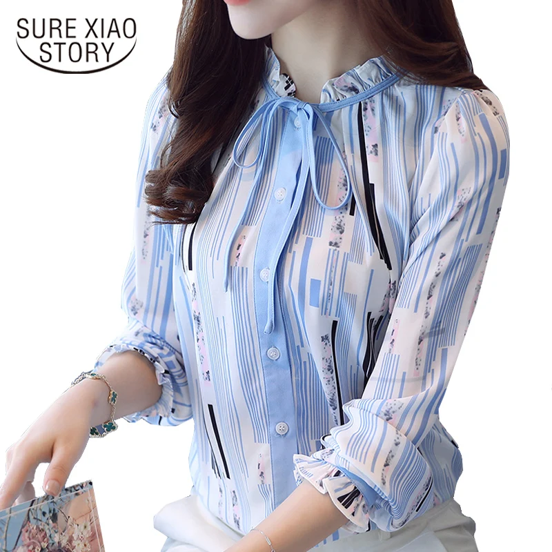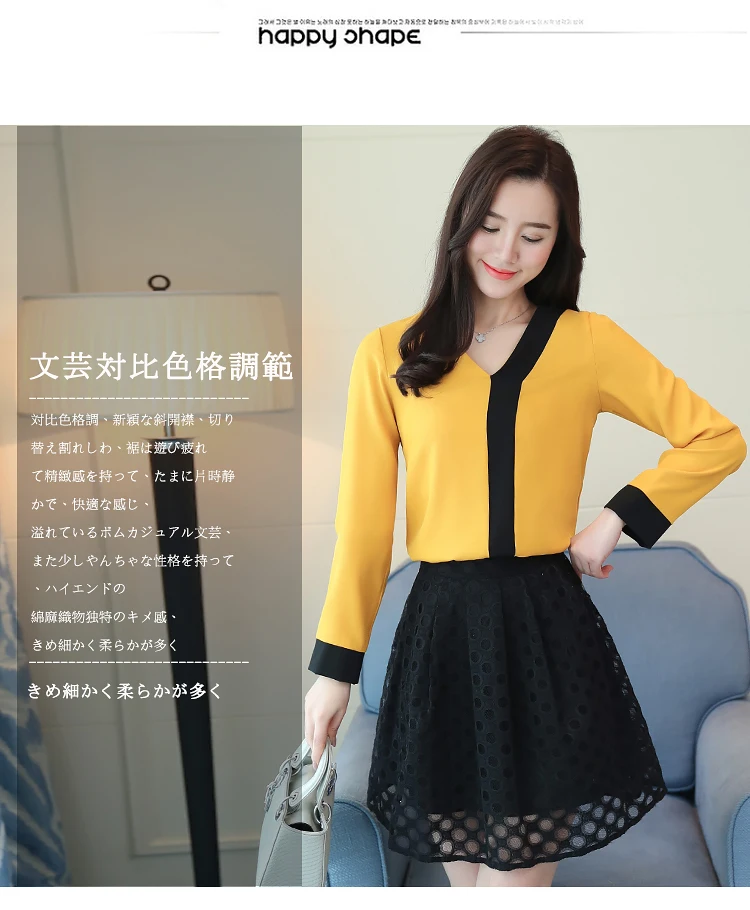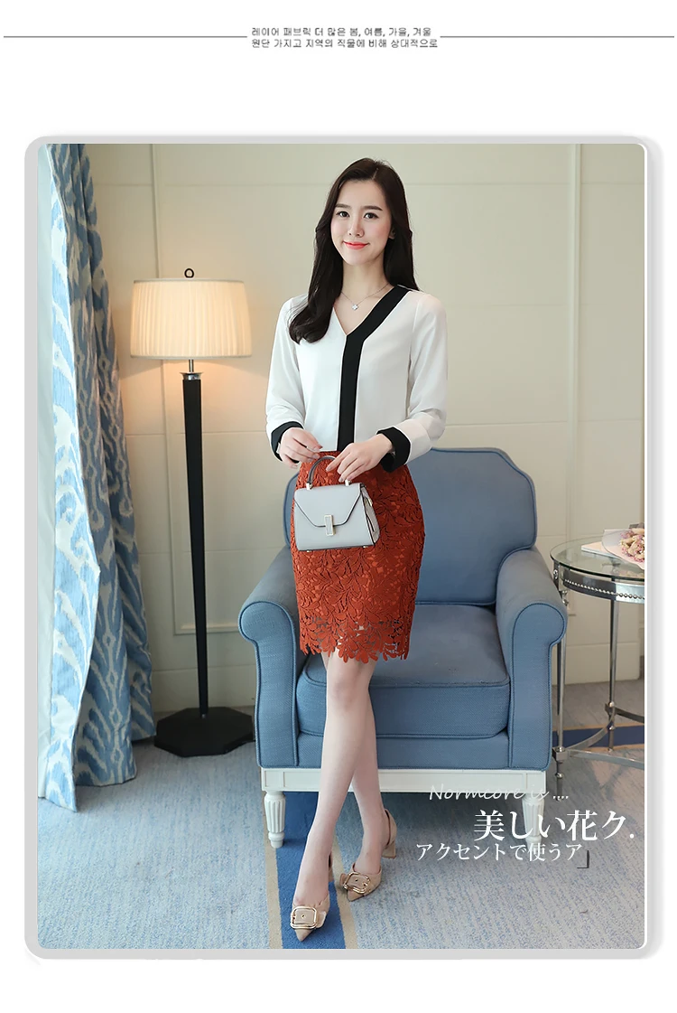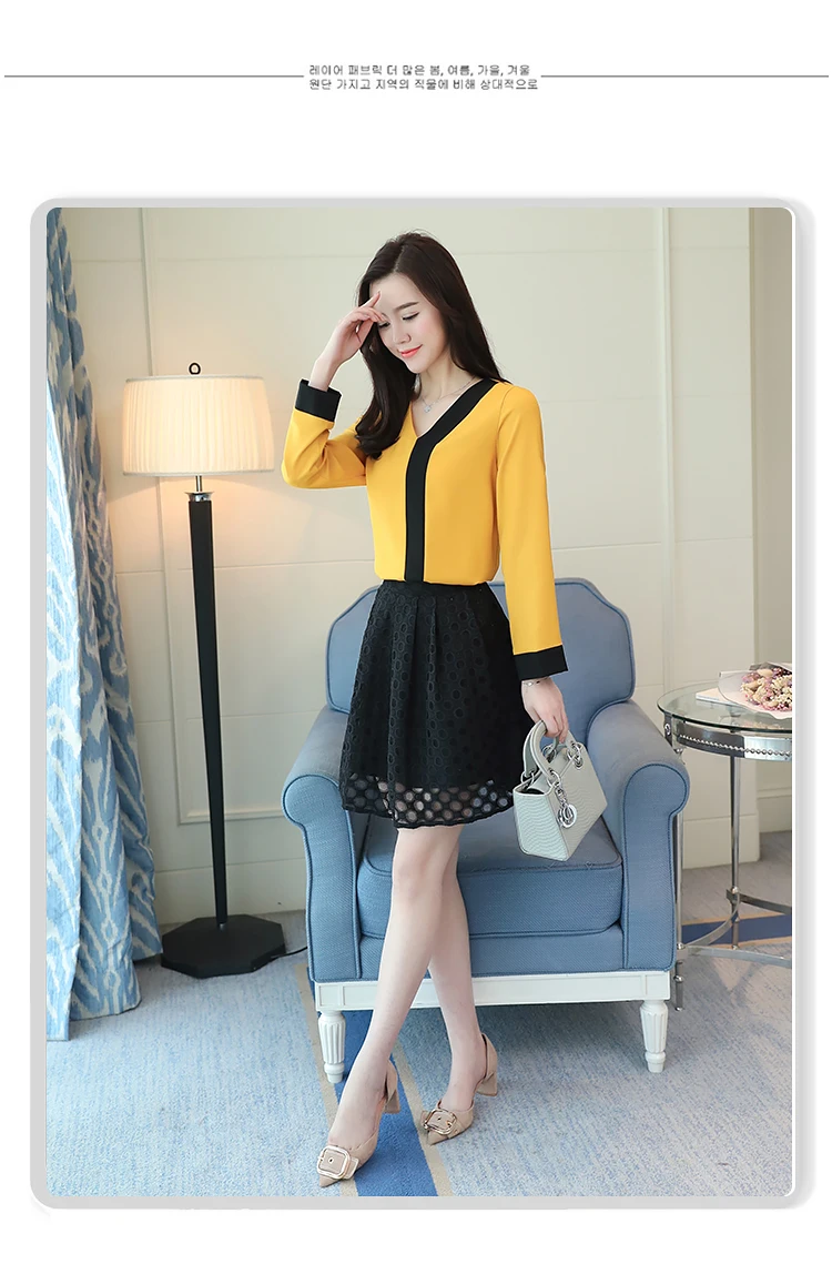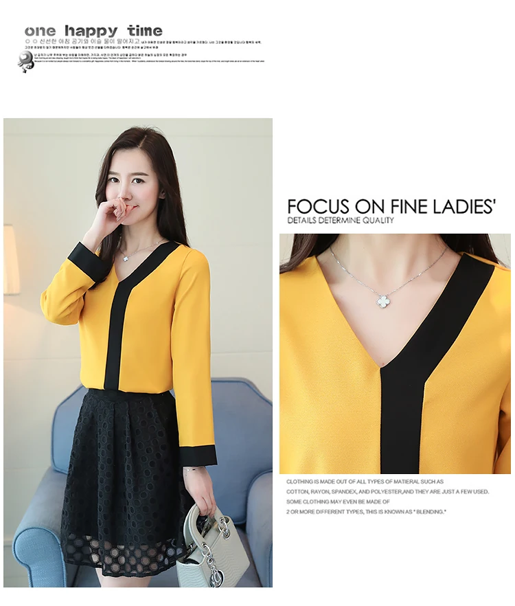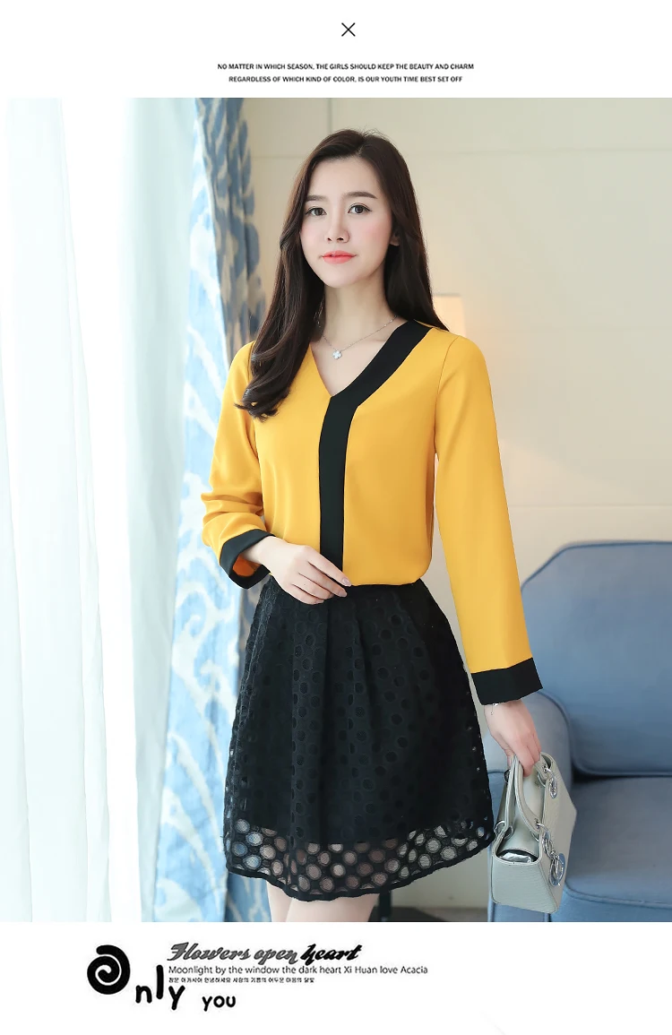 2018 fashion chiffon office lady shirt women blouse long sleeve V-neck women tops patchwork women’s clothing shirts Tops D826 30